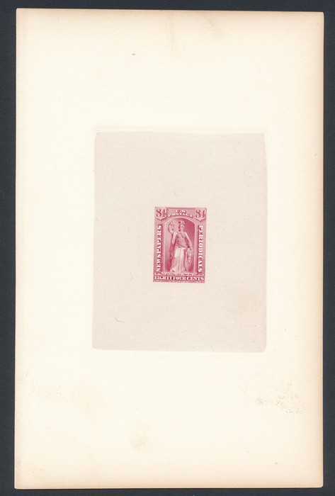 Periodical 96c rose, large DIE PROOF on India paper on card (145x225mm), imperf, in issued colour. Superb UN as made, 4 margins. SG N194(p) cat £1400 as normal. Sc PR23P1 cat US$100+ (normal cat US$2250). (Image1)