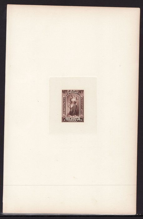 Periodical $1.92 dark brown, large DIE PROOF on India paper on card (145x225mm), imperf, in issued colour. Superb UN as made, 4 margins. SG N195(p) cat £1700 as normal. Sc PR24P1 cat US$100+ (normal cat US$2250). (Image1)