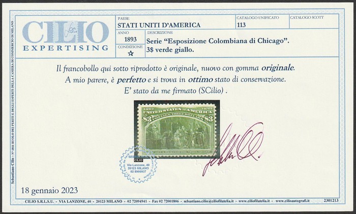 yellow green. VF fresh MLH with nice original gum, excellent colour. Scott 243 cat US$1500. SG 248 cat £1800. 2023 Cilia photo-cert. (P) (Image1) (Image2)
