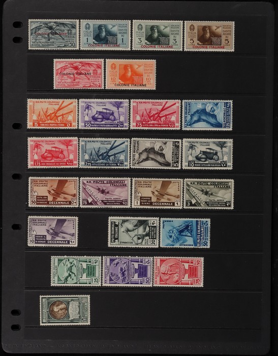 884 imageItalian Colonies: 1912-40 Mint collection inc Aegean Is 1929 King's Visit set to 10L. 1934 Football Air set 50-10L. 1930 Virgil set to 10L. 1932 Dante set to 10L plus Air set to 10L. General Cols inc 1933 Air set to 10L. 1932 Dante Air set to 10L. 1934 Football vals to 50L inc Airs. Cyrenaica inc 1933 Zeppelin Air set to 20L. 1933 Balbo Air set. Eritrea inc 1930 Virgil set to 10L. Tripolitania inc 1933 Balbo Air set. 1931-32 Air Pic to 5L. Somalia 1926 St Anthony to 5L. Libya 1921 Goddess 15c & 25c (2 shades), all CENTRE INVERTED. F-VF M/MNH. SG cat £1650+ = A$3200+. Sass cat €2100+ = A$3500+. (203) (Image1) (Image2) (Image3) (Image4) (Image5) (Image6) (Image7) (Image8) (Image9)