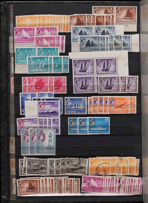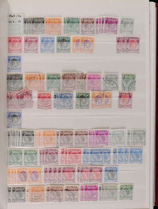 898 imageMalaysian States 1904-80s collector's duplicates in two 48 pg Lighthouse s/books. Johore 1949 to $2, Kedah 1922 to 50c, Kelantan 1951 to $2, Malacca 1954 to $5, Selangor 1895 to $1, 1949 to $5 etc, Singapore 1948 to $5 both perfs, 1955 QEII to $5, various sets to $10, Malaysia 1957-80s. Possible specialist interest. Fresh F-VF MLH/MNH, about 40% G-VFU. SG est cat £3500+ = A$7000+. (6200+) (Image1) (Image2) (Image3) (Image4) (Image5) (Image6) (Image7) (Image8) (Image9) (Image10) (Image11) (Image12) (Image13) (Image14) (Image15) (Image16) (Image17) (Image18) (Image19) (Image20) (Image21) (Image22) (Image23) (Image24) (Image25) (Image26) (Image27) (Image28) (Image29)