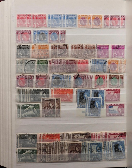 897 imageMalaya & Borneo Area 1886-1960s in 32 pg Lighthouse s/books (2) inc North Borneo 1886-1935, 1897 to 24c, 1901 opts to $1, 1904 to 24c, 1925 to 25c, 1935 to 25c, 1939 to 25c, 1950 KGVI to $2, 1954 QEII to $2, range of Sabah to $2, Labuan 1892 to 40c, 1897 to 24c, Brunei 1924 to 12c, 1947 to 50c, 1964 to $1 with glazed paper range, Straits Settlements 1867-90s, 1904 to 50c, 1921 to $1, 1937 to $2 inc unissued 8c, 1922 Malaya Borneo Exhibition few plating errors, BMA 1945 to $5 M & U, Federated Malay States, 1922 to $1, Sarawak 1875-1920s issues inc 1942 Brooke to $1 with Revenue cds, 1942 6c on 5c Sembilan in blks. Generally fresh F-VF MLH/MNH, about 50% G-VFU. SG est cat £3500+ = A$7000+. (2800+) (Image1) (Image2) (Image3) (Image4) (Image5) (Image6) (Image7) (Image8) (Image9) (Image10) (Image11) (Image12) (Image13) (Image14) (Image15) (Image16) (Image17) (Image18) (Image19) (Image20) (Image21) (Image22) (Image23) (Image24) (Image25) (Image26) (Image27) (Image28) (Image29) (Image30) (Image31) (Image32) (Image33) (Image34) (Image35) (Image36) (Image37) (Image38) (Image39) (Image40)