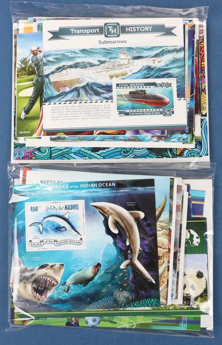 899 imageMaldive Islands: Modern M/sheet collection with 200 diff MNH with good Thematic appeal inc Animals, Aviation, Birds, Flowers, Marine Life, Orchids, Sport & Sharks. Retail up to $10 per M/S. (200 diff) (Image1)