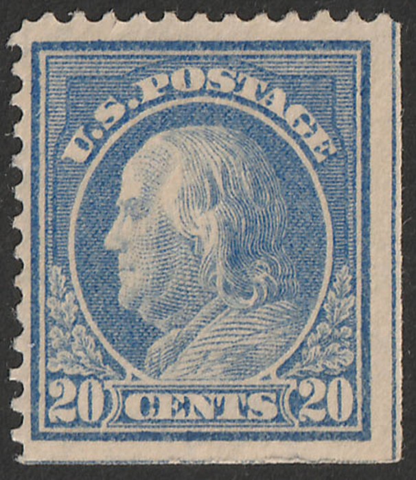 20c ultramarine, wmk 'U' perf 12, imperf at right & bottom from sheet margin. VF fresh MLH. Scott 419 cat US$190. SG 414 cat £225. (Image1)