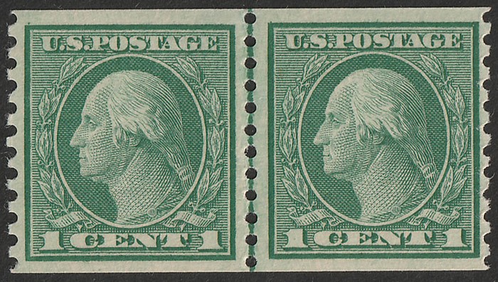 1c green horiz pr, Coil stamps imperf x perf 10, Rotary Press printing. VF fresh MNH. Scott 452 cat US$60. SG 458 cat £25 for M, should be at least double, £50 MNH.