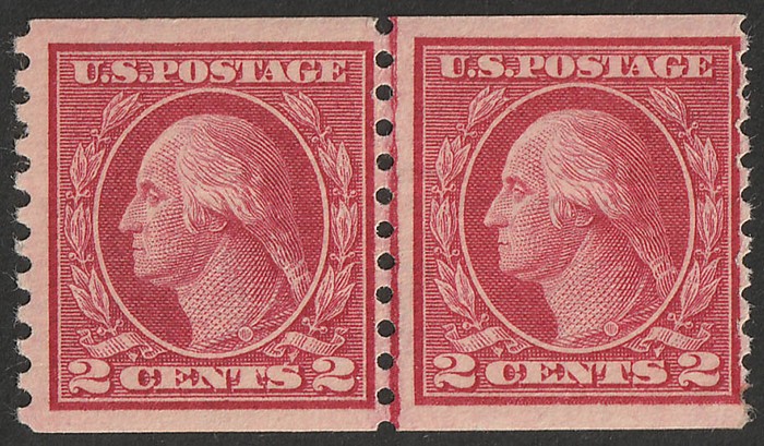 2c carmine type III, horiz pr, Coil stamp imperf x perf 10, Rotary Press printing. F-VF fresh MNH. Scott 455 cat US$36. SG 499 cat £23 for M, should be at least double, £46 MNH. (Image1)