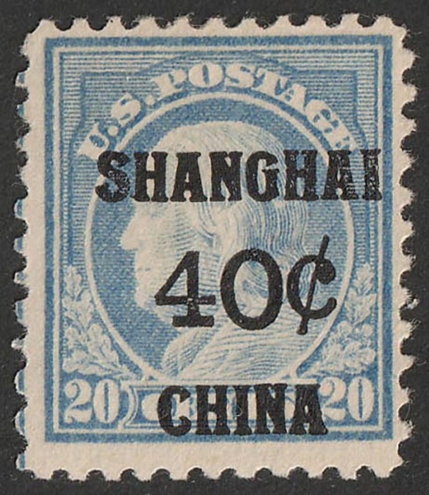 'SHANGHAI 40c CHINA' opt Franklin 20c deep ultramarine. VF fresh MLH. SG 13 cat £170. Sc K13 cat US$120. (P) (Image1)