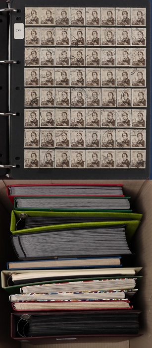 903 imageMixed World Carton lot Two: Australia 1960s-90s used accumulation in 60 hagners inc 1966 Navigator sets (64) plus M/Sheet, high vals to $10 & comp Pic/Commem set plus 1938 Robes £1 strip of 4 Telegraph punctures. Austria & Kenya in separate 16 pg s/books. Christmas Is 1958-94 MNH collection in hagners & Seven Seas hingeless album inc 1958 QEII to $1 (3 sets). 1963 to $1 (3 sets), 1968 Fish, & 1987 Marine Life to $5. Christmas Is Used accumulation (100s) in two 16 pg s/books inc 1963 Pics to $1 Bird CTO (19 sets, retail $190). Great Britain QEII Machine accum (many 100s) in thick VGC Lighthouse 64 pg s/book (new retail $95). Norfolk Is 1940s-70s M/MNH/U accum in 25 hagners inc Ball Bay to 2/-, 1960 Local Govt 2/8 blks of 4 plus Decimal Pics/Commem. Also Romania & Spain accumulation in separate Lighthouse VGC 32 pg s/books ten albums in total. All neatly packed into large carton, mixed MNH/M/G-F/VFU. (1000s) (Image1) (Image2) (Image3) (Image4) (Image5) (Image6) (Image7) (Image8) (Image9) (Image10) (Image11) (Image12) (Image13) (Image14) (Image15) (Image16) (Image17) (Image18) (Image19) (Image20) (Image21) (Image22)