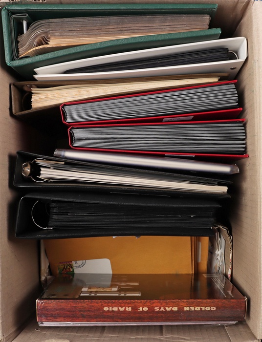 912 Moving carton British Commonwealth carton lot with sets/singles in hagners & large s/book inc Australia Territories large s/book inc Australia Territories 1960s-80s Def/Pic sets inc Norfolk Is 1967 Ships blks of 4 CTO, plus AAT, Cocos & Christmas Is. Aust decimals blks of 4 inc 1966 Pics to 30c Ibis MNH, Ceylon 1850s GB KGV Seahorses 2/6 (6), 5/- (5) & 10/- Indonesia 1996 Joint Issue Cuscus booklets (4, cat $400), Liberia 1964 Winter Olympics M/sheet trio (cat$100), NZ 1960s Pics to £1 U & 1967 to $2 Geyser MNH. PNG 1963 QEII £1 (5), South Africa 1954 Wildlife Defs to 10/- plus much more in these 2 albums. Then Australia 1980s FDC in thick yellow binder & 1976-96 Seven Seas hingeless pgs (retail $220) in white binder. AAT 1981-2012 hingeless album. Christmas & Cocos Is 1958-81 Used collection in illustrated album. Jersey 1970s MNH Pics/Commems (26 diff) in sheets of 25 (FV $95). British Commonwealth on pages inc Australia 1913 Kangaroos 1st wmk set to 1/- (cat $300). GB KGVI Defs to £1 & NZ 1940s Healths & Pics. Finally Malaysia collection inc Labuan 1890s Pics & QV Sidefaces, Straits Settlements KGV & WWII Japanese Occup. Mixed M/MNH/G-VFU. (100s)