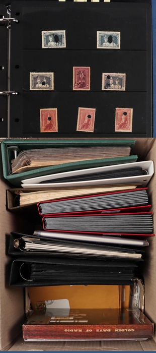 910 Mixed world collections/accumulation in 4 albums or s/books, plus many loose. Australia Pre-decimal MLH-MNH with some pre-war, also FDCs, PSEs & loose Mess to late 1980s (few 1000). Belgium 1910 to 1960s on leaves (cat £200). Ireland 1929-1975 on leaves inc 1953 Festival, set 1953 Emmet Anniv, 1960 Europa set, plus various others (cat £300). Spain 1850s-1870s selection inc 1851 6r blue, 1854 6r blue & 1854 Officials 1L on blue QV. USA 1850s-1970s inc 1851-61 10c, 1893 Columbians to 10c, 1851-61 30c UN, 1901 Pan-Am set, 1912 Parcel Post $1, plus others (cat £1100), also qty off paper, United Nations/Vienna 1979-84 MNH/CTO in blks of 4 many extras, cat £1000. Also few empty albums inc Lighthouse binders, Great Britain 1970-79 in Lindner album mostly empty. Many others F-VF. (5000++)