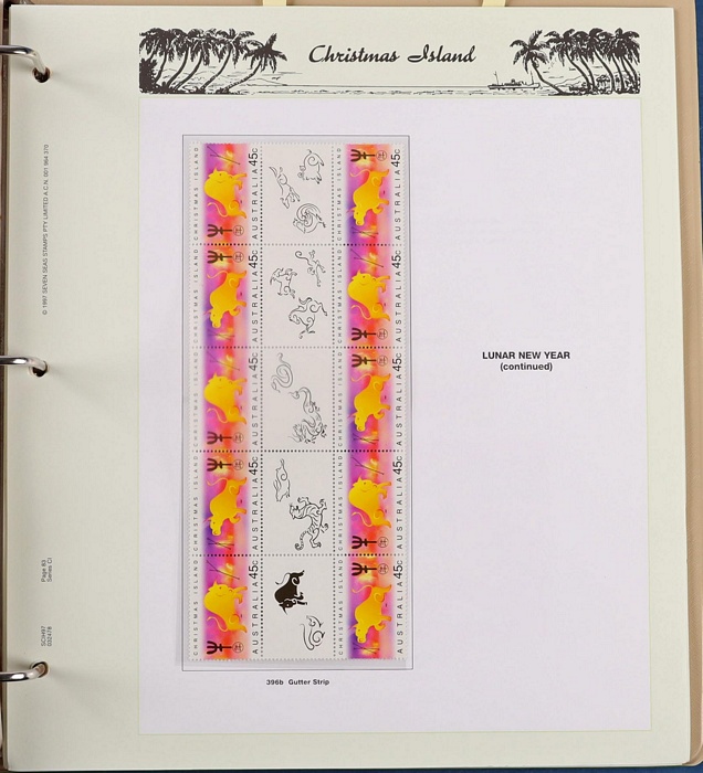 907 Mixed World Carton lot Six: Australia 1914-1965 Seven Seas hingeless album (retail $160) with scattered MNH contents, strength inc QEII Pics to 3/-. Then used Decimal Accumulation (100s) in 60 hagners with good variety inc multiples & M/Sheet. Christmas Is 1958-1997 MNH collection (retail $625) inc 1958 QEII, 1963 Pics, 1968 Fish, 1982 Birds, 1987 Wildlife to $5 & mid 1990s Lunar New Year gutter blks of 10. Plus s/book of MNH extras inc 1958 QEII, 1963 Pics to 1/- (2 sets), 1968 Fish (3 sets) & others to mid 1990s. Cocos Is MNH multiple accum in 30 hagners inc 1963 Pic sets (6, retail $270), 1969 Birds to $1 (12 setts, retail $120) & other Pic/Commem sets to early 1990s. USA 1930s-60s Commem accum in Chinese s/book. Germany 1930s-60s Defs/Commem accumulation (100s) mixed M/U in 30 hagners. WWF 1987-92 collection with 25 MNH & FDC set in thick green albums. A solid group of 8 albums, mixed MNH/G-F/VFU. House in large carton.