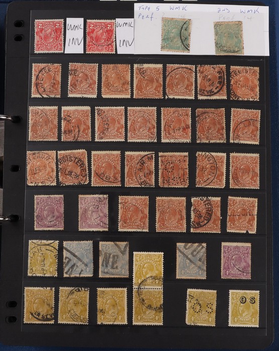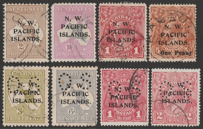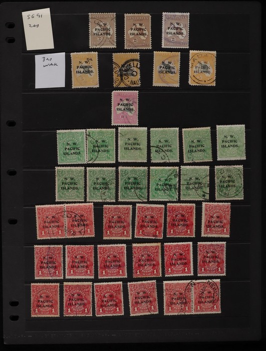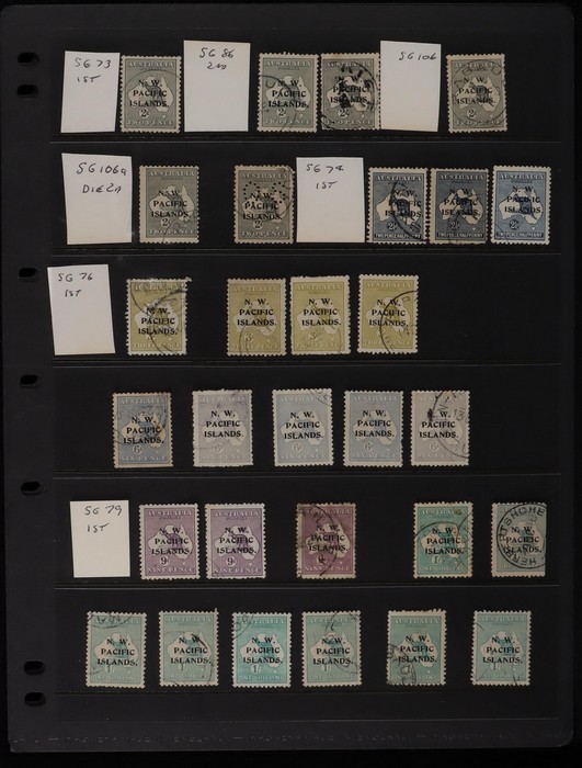 918 imageNew Guinea - NWPI: 1915-22 opts Used collection inc Kangaroo 2d to 10/-, 2d, 3d, 9d 1st wmk, 2/- 2nd wmk, 5/- 3rd wmk (3) radio cancels, 10/- 3rd wmk, KGV 1d red (50) with range of shades inc variety 7/37 neck flaw', SG 100, KGV 1d on 5d, perf OS range inc Kangaroo 3d & KGV 1d rosine perf OS. Mostly G-VF U. SG cat £3600+ = A$7200. (150) (P) (Image1) (Image2) (Image3) (Image4) (Image5) (Image6)