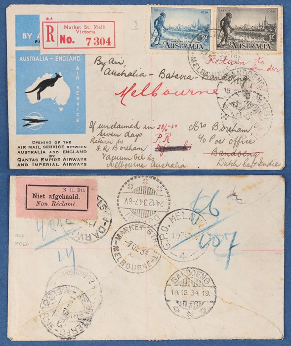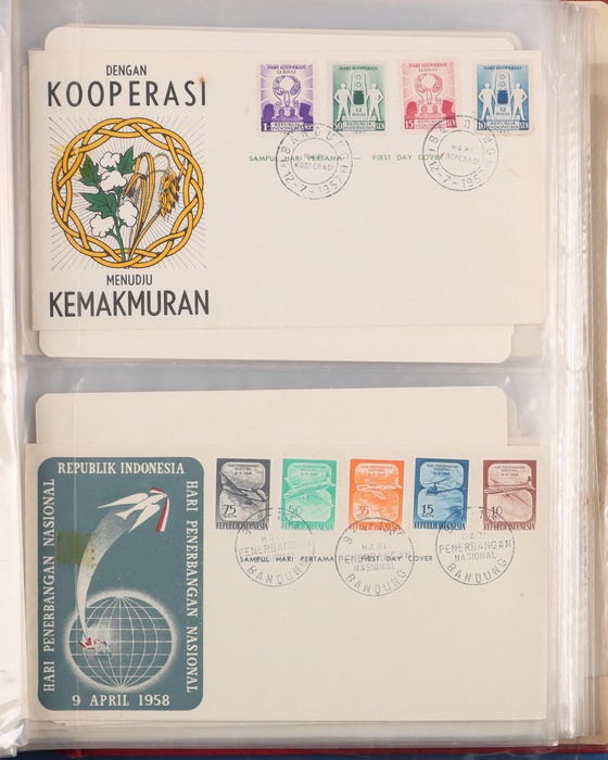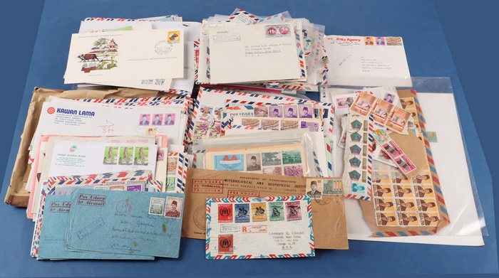 915 imageNetherlands Indies & Indonesia: 1930s-90s Postal History inc 1934/5 Melbourne-Batavia registered reverse with 'not collected/claimed' label & multiple b/s (AAMC cat $50) & 1939 Java-Sydney ($125). Extensive 1955-62 FDC (50), then general covers, some philatelic mail, lots of 1950s-60s Airmail, some Registered etc. Interesting lot! (300+) (Image1) (Image2) (Image3) (Image4) (Image5) (Image6) (Image7) (Image8) (Image9) (Image10) (Image11) (Image12) (Image13) (Image14) (Image15)