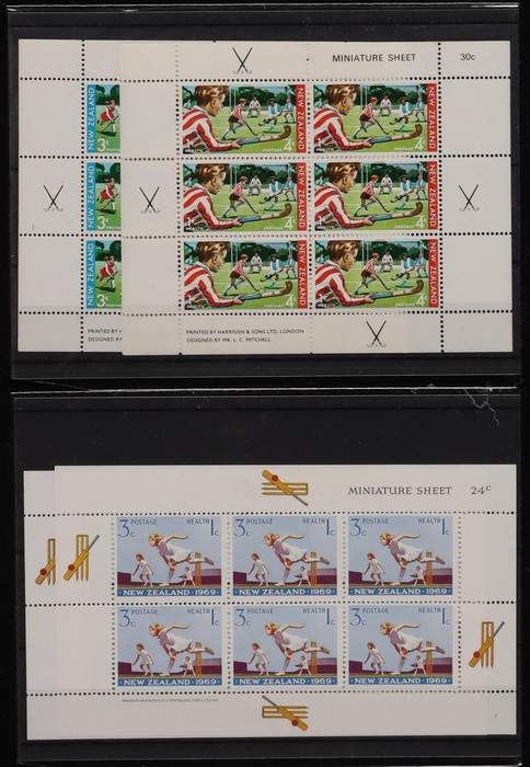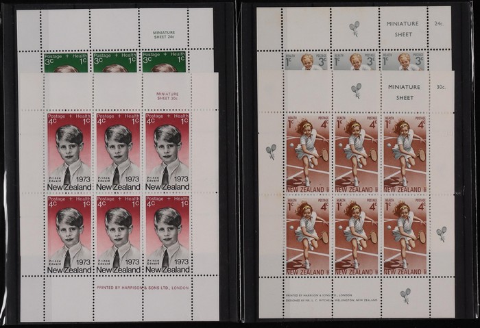 924 imageNew Zealand: Health M/Sheet MNH accumulation to 1973 Prince Edward with 1957 prs (26), 1959 (6), 1960 Birds (8), 1961 Birds (3), 1963 Prince Andrew (7), 1966 Birds (12), 1967 Rugby (4), 1968 Olympics (2), 1969 Cricket (15), 1971 Hockey (18), 1972 Tennis, 1973 Prince Edward (3) & 1965 Birds. All appear fresh MNH, SG cat £1240 = A$2500. (105) (Image1) (Image2) (Image3) (Image4) (Image5) (Image6) (Image7) (Image8) (Image9)