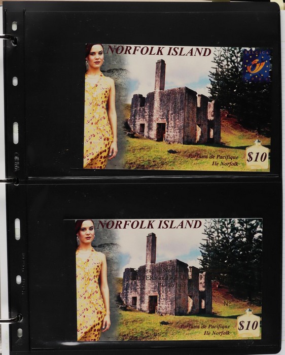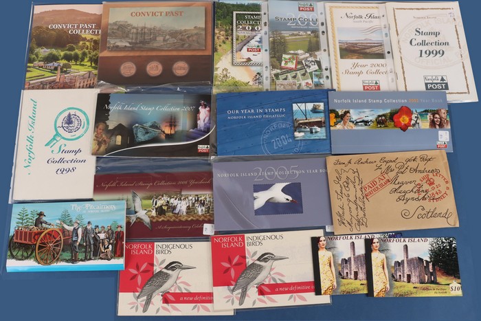 929 imageNorfolk Island: 1998-2007 PO Year Album packs of 10, FV $360. 2018 Convict Past collection with 6 diff M/Sheets in limited edition folder no. 006/200 & Convict Past folder with 3 medallions & limited edition M/Sheet no. 150/200. Also $10 Perfume booklets (2) & 1969 Birds PO Packs (2, retail $100). All fresh MNH. (Image1)