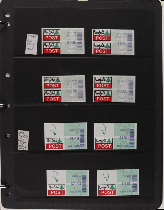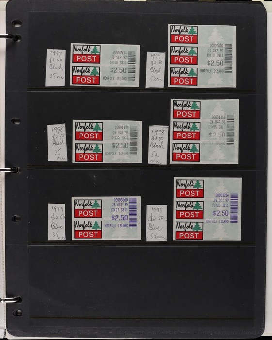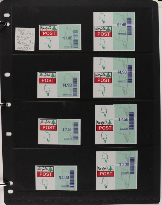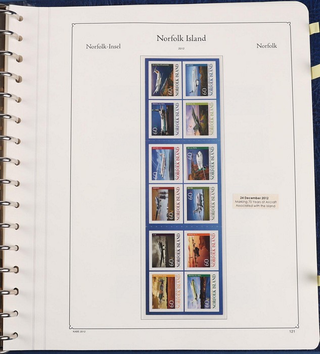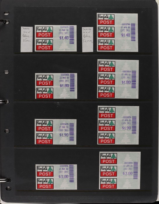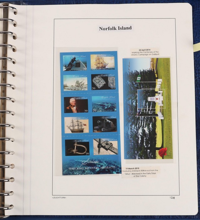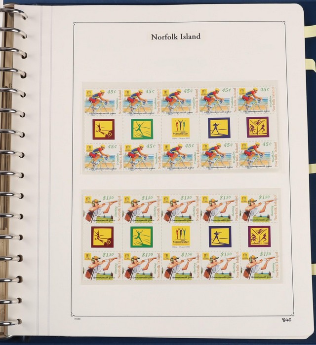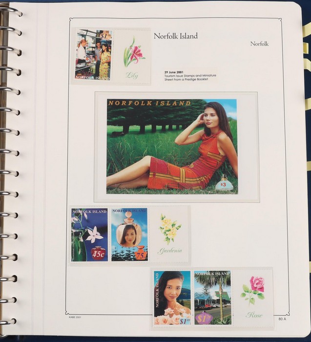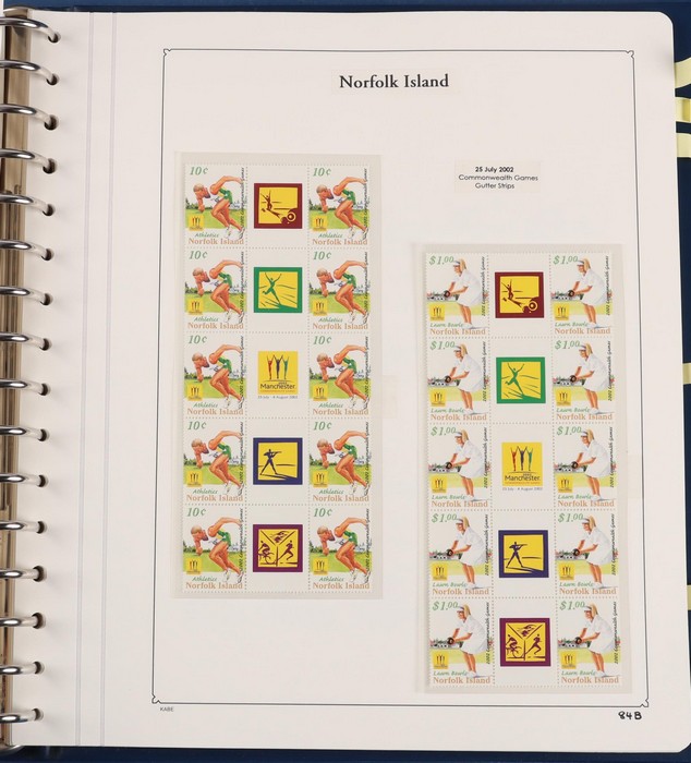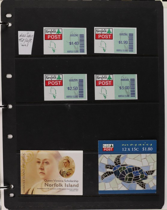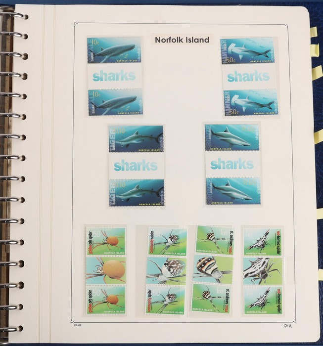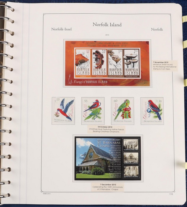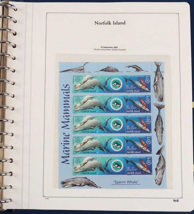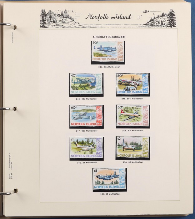 931 imageNorfolk Island: 1945-2014 extensive 3 volume MNH collection with 1947 Ball Bay set to 2/- blue, plus white papers ½d, 1d, 1½d, 2d set of 4. 1953 Pics to 5/- brown Bridge, 1960 Defs to 10/- plus SPECIMEN opts (5, retail $350) inc set of 3 diff types. 1960 Local Govt 2/8, 1966 opt set 1967 Ships, 1967 Birds, 1974 UPU M/Sheet. 1989-90 Ships set, 1994 Explorers to $5, 1995 Victory $10, 1995-2004 booklet panes/comp booklets, post millennium era MNH Pictorial gutter blks & multiples plus other optional extras. Mostly fresh MNH, retail $1200 to end 1990 plus $1060 FV 1991-2014 & another $650 for the 3 KABE slipcase hingeless album, total $2360. (P) (Image1) (Image2) (Image3) (Image4) (Image5) (Image6) (Image7) (Image8) (Image9) (Image10) (Image11) (Image12) (Image13) (Image14) (Image15) (Image16) (Image17) (Image18) (Image19) (Image20) (Image21) (Image22) (Image23) (Image24) (Image25) (Image26) (Image27)