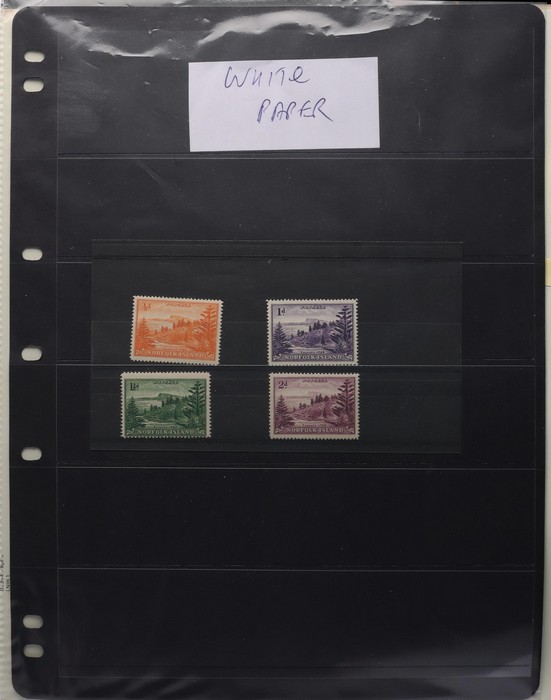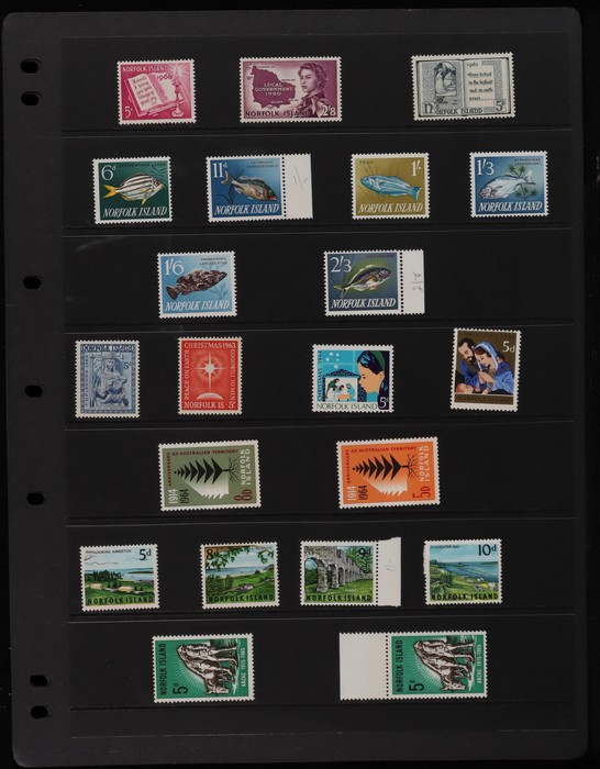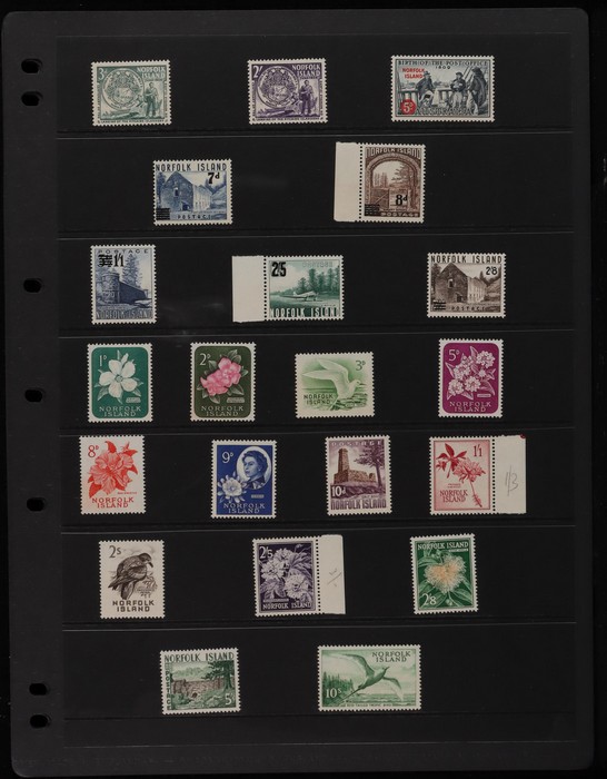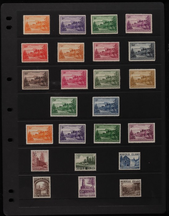 933 imageNorfolk Island 1947-69 collection in hagners with 1947 Ball Ball to 2/- blue MNH, 1956 white paper set VFM. Then fresh MNH inc 1953 Pics to 5/- brown Bridge, 1960 Defs to 10/- Bird & all other pre-dec inc 2/8 Local Govt. Decimals to 1969 Birds inc 1966 opts & 1967 Ships blks of 4. Fresh & clean, SG cat £400, retail $530. (238) (Image1) (Image2) (Image3) (Image4) (Image5) (Image6) (Image7) (Image8) (Image9)