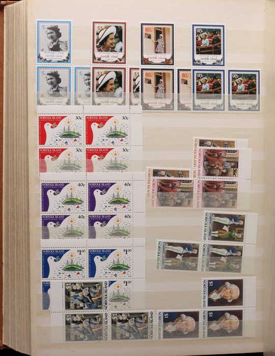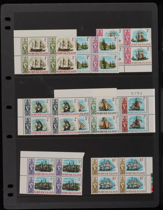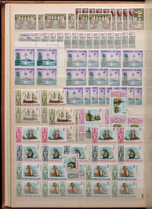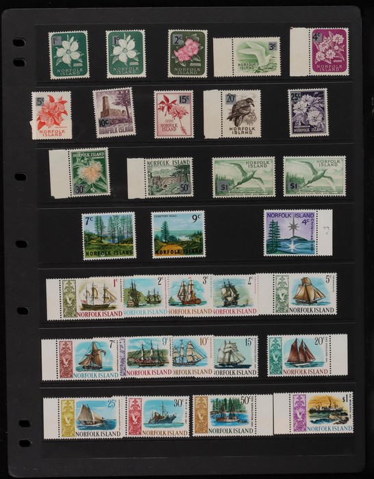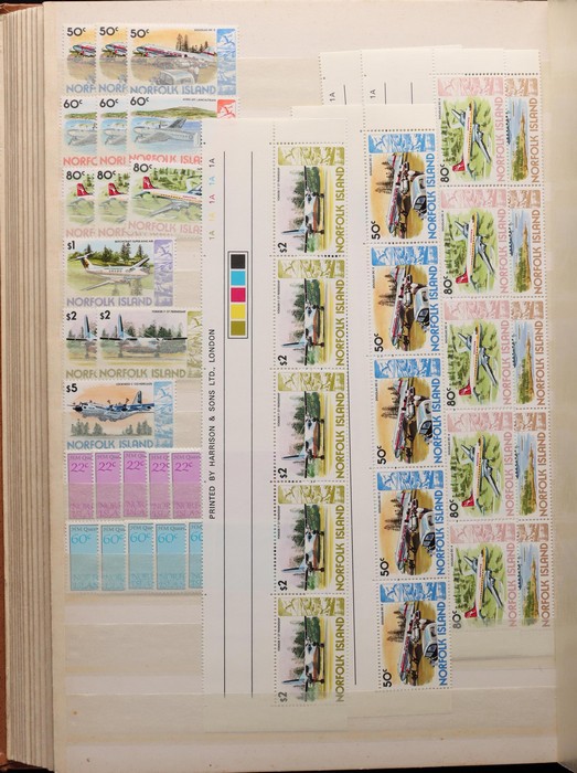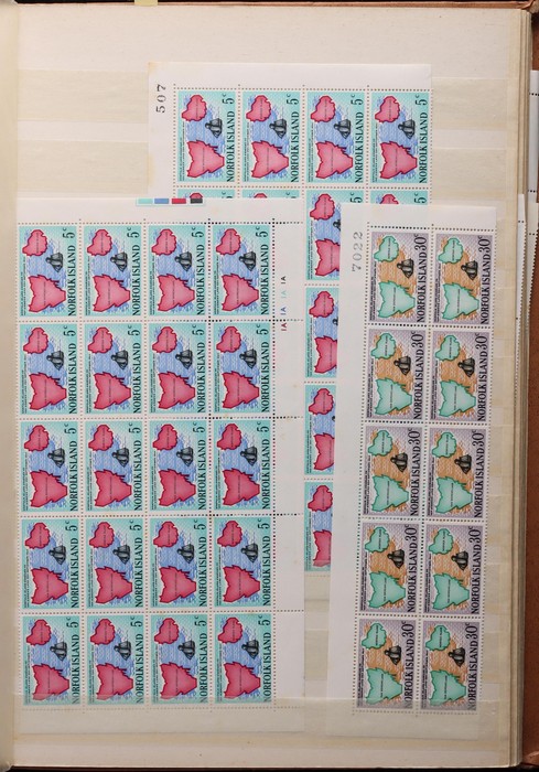 938 imageNorfolk Island: 1960s-80s Dealer MNH 'Back-Up' stock in thick Lighthouse 60 pgs s/book with good selection of Pic/Commem sets inc 1967 Ships, 1976 Butterflies, 1981 Aircraft, 1984 Flowers, Christmas & others with many blks & multiples. Odd CTO, nearly all fresh MNH, FV $530. (many 100s). (Image1) (Image2) (Image3) (Image4) (Image5) (Image6) (Image7) (Image8) (Image9) (Image10) (Image11) (Image12) (Image13)