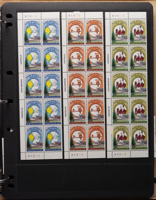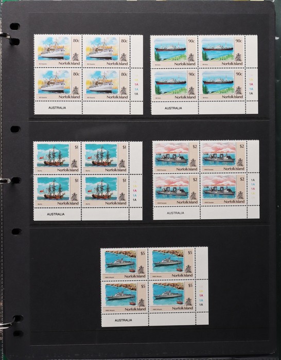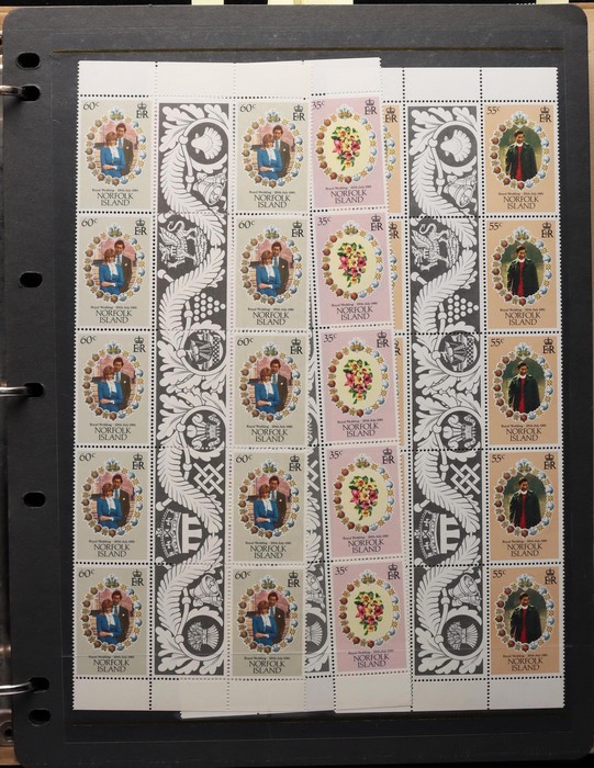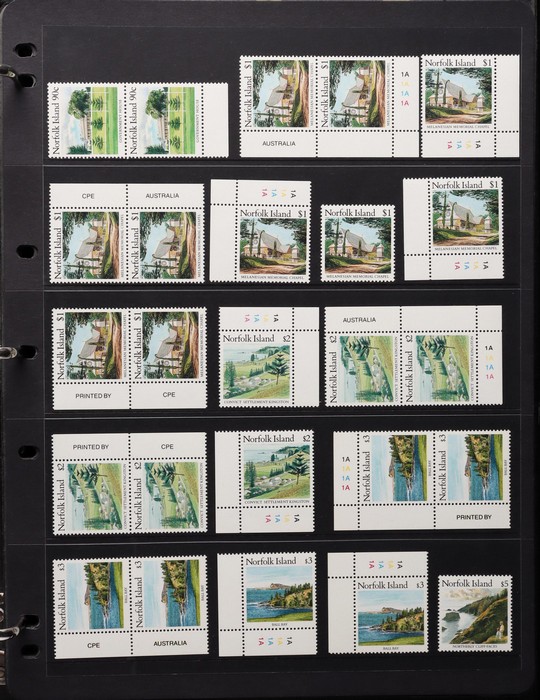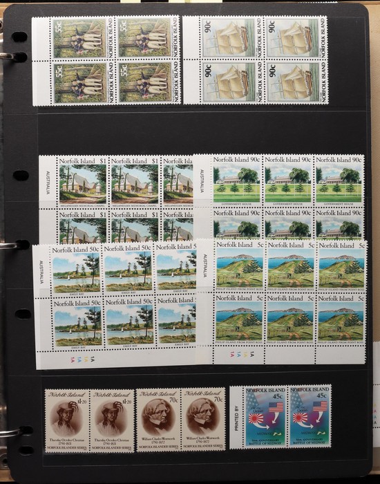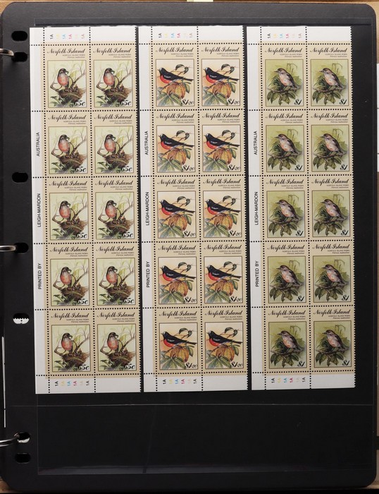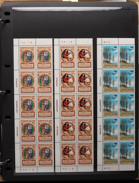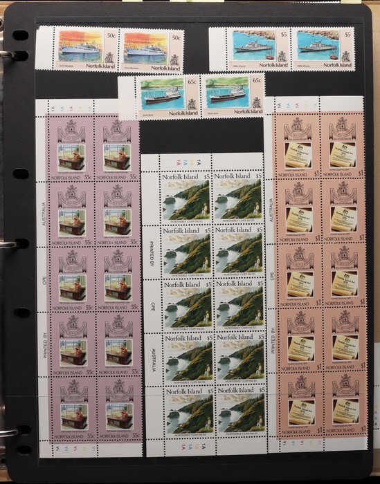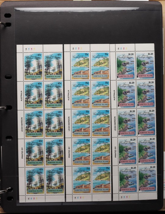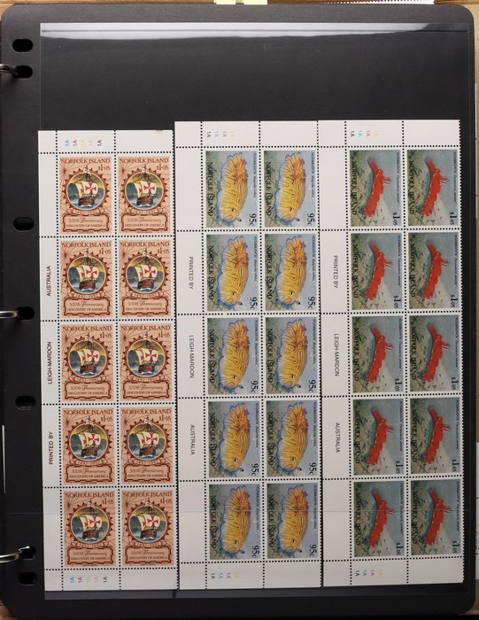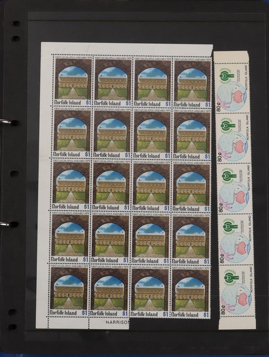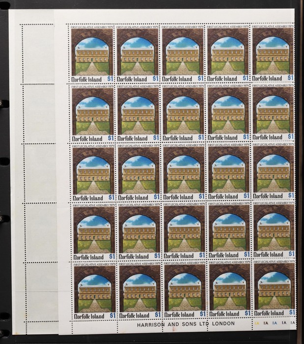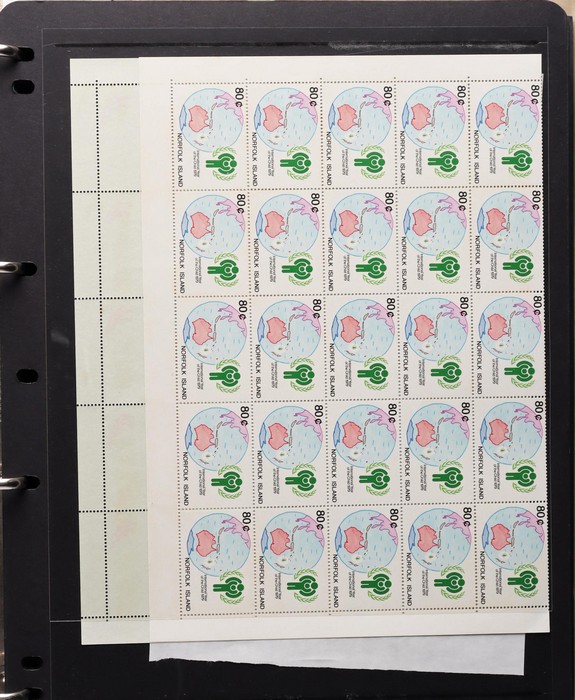 943 imageNorfolk Island: 1970s/80s MNH accumulation/collection (FV $900) disorganised in 95 hagners inc 1979 IYC 80c sheet of 50 & pane of 25, 1979 Legislation $1.00 sheet of 50 & pane of 25, 1980 QM set panes of 25, 1981 RW gutter blks of 10, 1987 Scenes to $5 (12 sets) inc cnr blks of 4 plus much more inc 1981 Aircraft & 1984 Flowers sets to $5. All fresh MNH, total FV $900. (Image1) (Image2) (Image3) (Image4) (Image5) (Image6) (Image7) (Image8) (Image9) (Image10) (Image11)