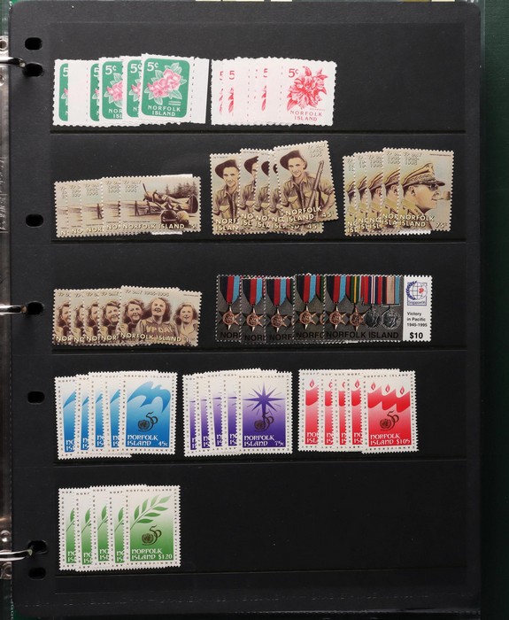 948 imageNorfolk Island 1990s MNH Collection/accumulation (FV $1100) inc 1990 Ships to $5 (8 sets), 1995 Victory to $10 (ten sets), 1997 Stamp Anniv to $8 (13 sets), 1994 Pacific Explorers to $5 (15 sets) & other Pic/Commem sets with mostly 4-5 sets of ea. Also 2017 Waterfalls sets & M/Sheets (FV $80). All fresh & clean, total FV $1180. (Image1) (Image2) (Image3) (Image4) (Image5) (Image6) (Image7) (Image8) (Image9) (Image10) (Image11)