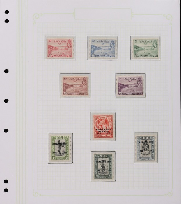 955 imagePapua: 1934-41 comp with 1934 Declaration, 1935 Silver Jubilee, 1937 Coronation, 1938 Declaration & 1939-41 Air sets. VF MLH. SG 146-68 cat £135. (22) (Image1) (Image2) (Image3)
