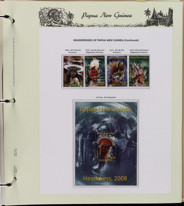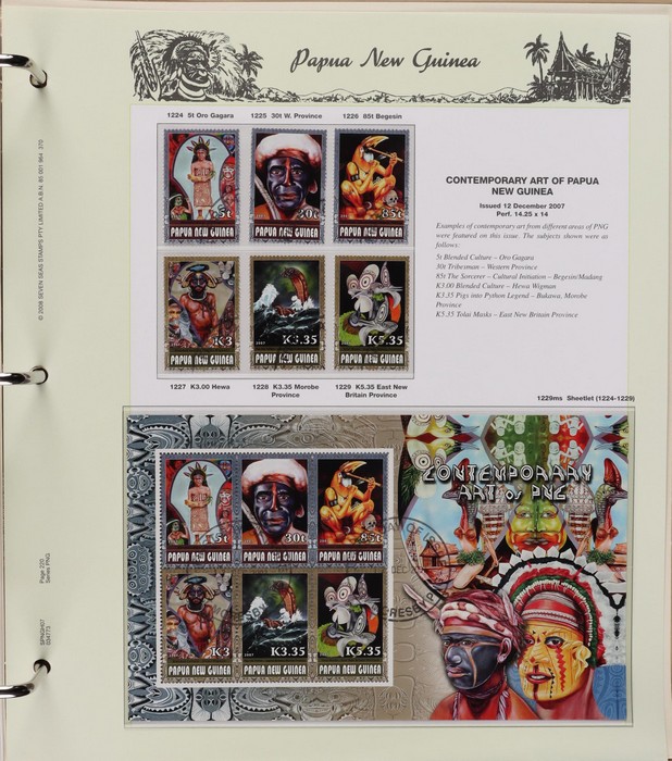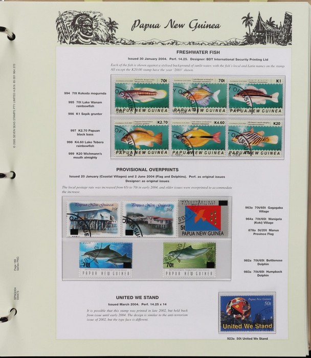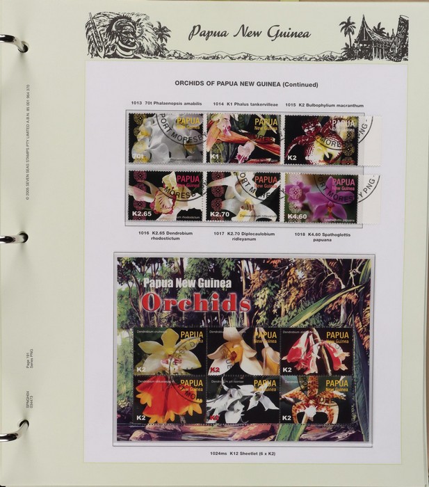 958 imagePapua New Guinea: 1952-2007 VFU/CTO collection in 2 Seven Seas illustrated albums (hingeless 1987-2007, retail $300) with 1952 Pics to £1 Fisherman, 1963 Defs to £1 QEII, 1964 Birds to 10/- & all other pre-dec Pic/Commem sets. 1966-2007 comprehensive FU/CTO inc 1994 Surcharges set of 11, other Surcharges, largely VF, post 1980 original FV K1300+ inc great Thematics in the post Millennium era. (800+, 55 M/sheets) (Image1) (Image2) (Image3) (Image4) (Image5) (Image6) (Image7) (Image8) (Image9) (Image10)