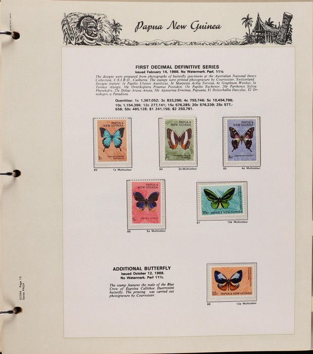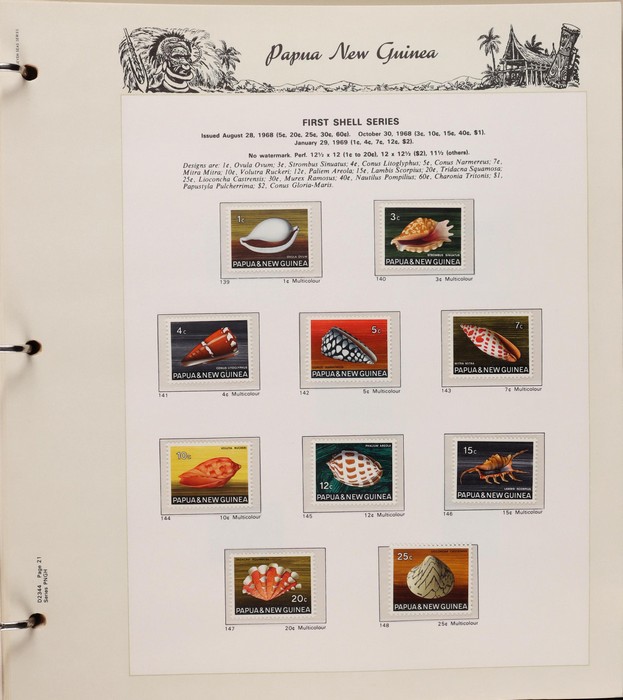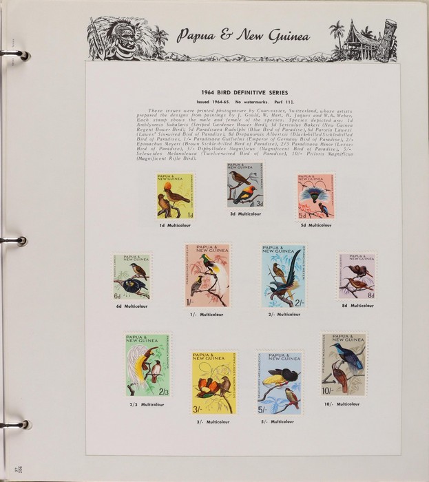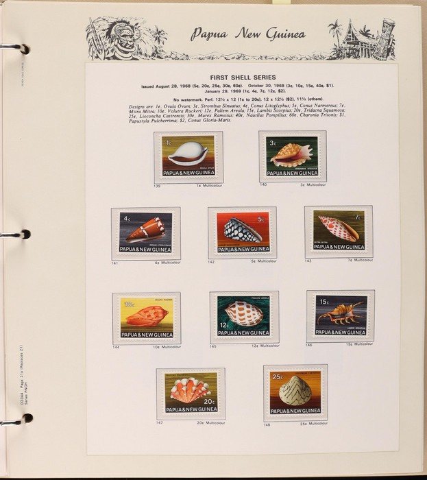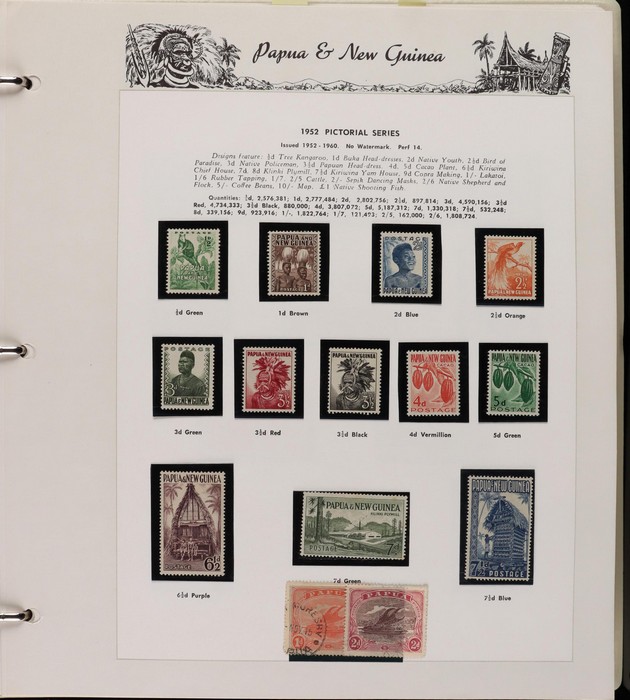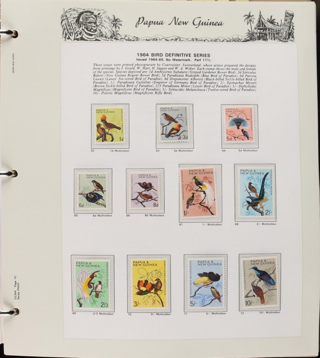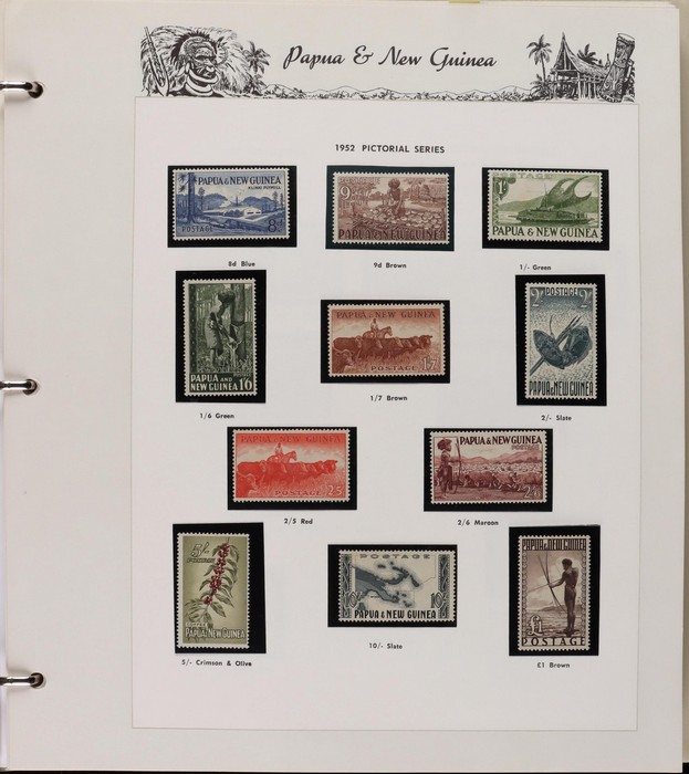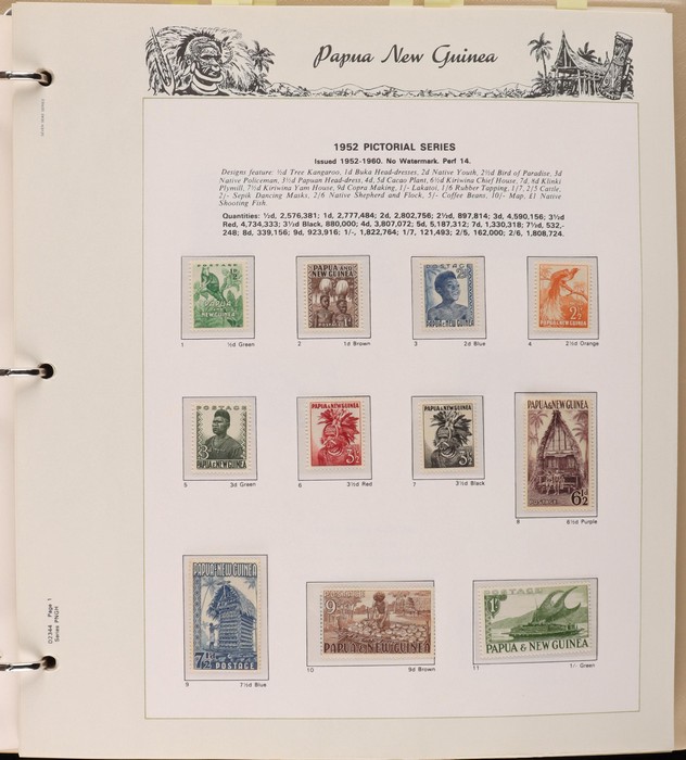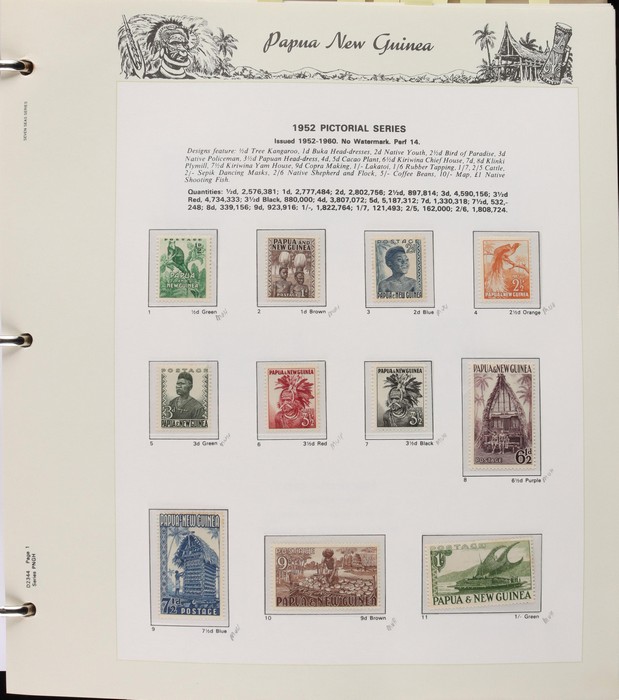 962 imagePapua New Guinea 1952-95 MNH collection in 2 VGC Seven Seas hingeless albums (new retail $300) with all pre-decimals (retail $400) inc 1952 Defs to £1 Fisherman, 1958 Pics to 5/- Coffee, 1960 Defs to QEII £1 & 1964 Birds to 10/-. 1966-end 1995 decimals near comp (retail $760) with 140+ Pic sets inc 1966 Butterflies, 1968 Shells, 1973 Panorama, 8 M/Sheets & 1990s Birds to K10. All fresh & clean, total retail $1460 inc the hingeless album. (Image1) (Image2) (Image3) (Image4) (Image5) (Image6) (Image7) (Image8) (Image9) (Image10) (Image11)