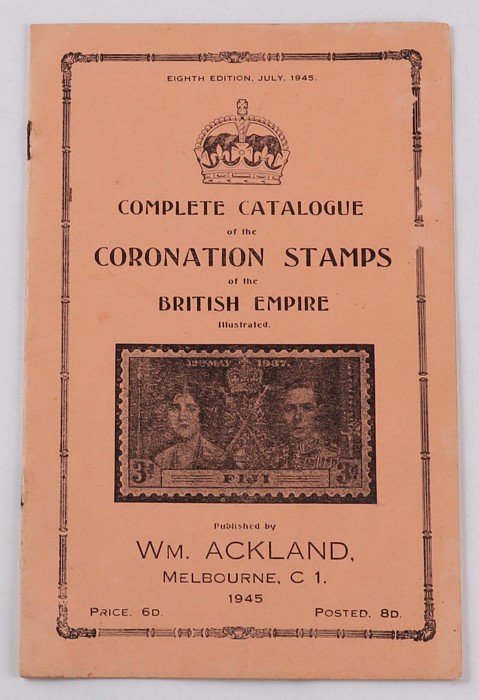 Catalogue of the (1937) Coronation Stamps of the British Empire, 8th Edition 1945. 12 pgs, plus covers. Minor scuffs, G-VG condition. (Image1)