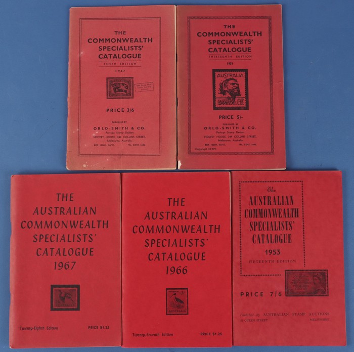 Concise Library with 14 diff editions inc Tenth Edition (1947), 15th edition (pub by Aust Stamp Auction 1953), 1967 (1st Decimal edition) & 41st edition (pub Seven Seas Stamps), plus odd duplicate. Generally VGC. Interesting reference group. (18) (Image1) (Image2)