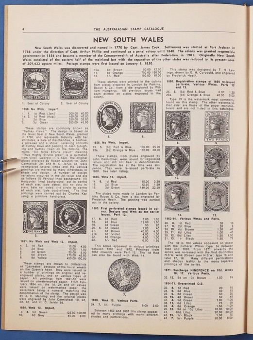 Australasian Stamp Catalogue inc States & Dependencies, 63 pgs. Pub by Review Publication Dubbo, VGC. (Image1) (Image2)