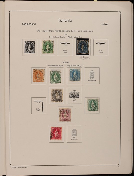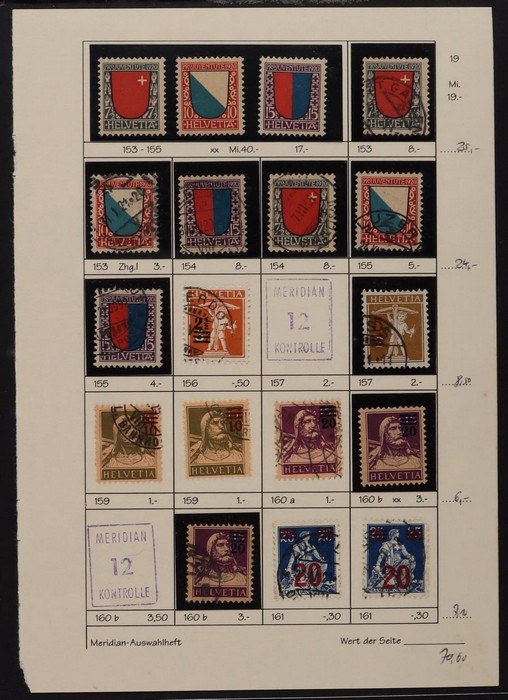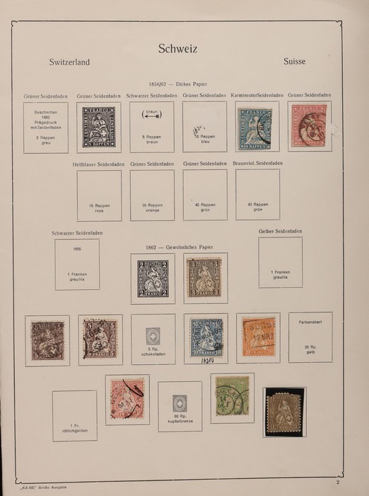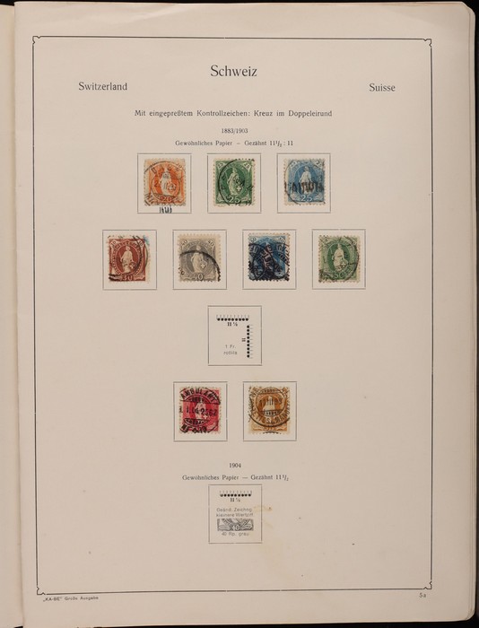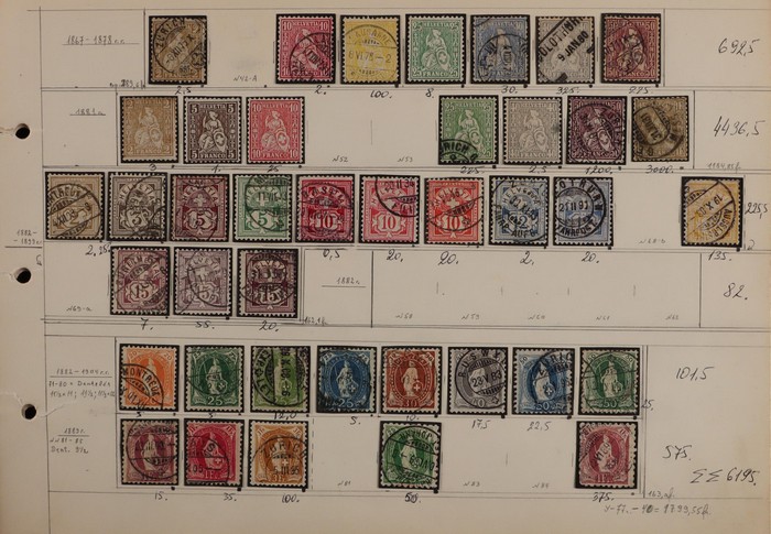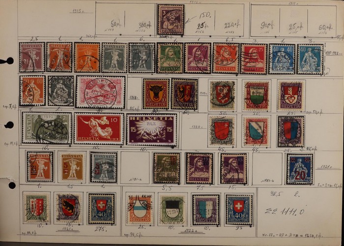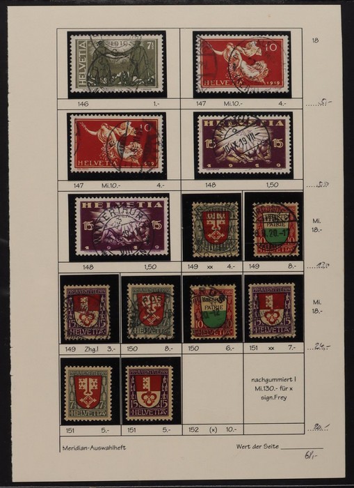 1005 imageSwitzerland: 1850-1960 collection on illustrated pages in Davo album inc 1850 10r, 1851 5r, 1852 15r, 1854 5r-1Fr imperf, 1962 2c-1Fr comp, 1862 1Fr bronze-gold, 1867 2c-50c comp, 1881 2c-1Fr comp, 1882 2c-15c comp, 1882 to 3Fr, 1923 Air set to 2Fr comprehensive to 1950s inc 1945 Pence set comp to 10Fr with many both M & VFU, 1913-63 Pro Juventute sets comp, few League of Nations, Officials & Stamp Duty issues mostly comp sets, all diff. Mostly F-VF fresh M/U, some mixed classics as expected, while there are many superb stamps in later issues. SG cat £12,000+ = A$24,000. Valuable collection. (900 + 2 M/S) (P) (Image1) (Image2) (Image3) (Image4) (Image5) (Image6) (Image7) (Image8) (Image9) (Image10) (Image11) (Image12) (Image13) (Image14) (Image15) (Image16) (Image17) (Image18) (Image19) (Image20) (Image21) (Image22) (Image23) (Image24) (Image25) (Image26) (Image27) (Image28) (Image29) (Image30) (Image31) (Image32) (Image33) (Image34) (Image35) (Image36) (Image37)
