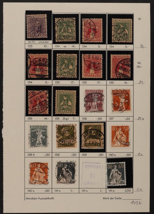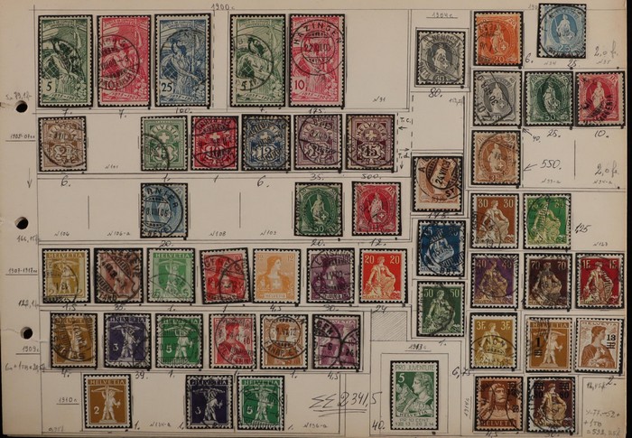 1006 imageSwitzerland: 1854-1920s collection inc 1854-62 Strubeli to 40R. 1862-81 Sitting Helvetia to 1Fr, plus shades & papers inc 60c & 1Fr (3 U). 1882-1906 Standing Helvetia to 3Fr inc printings. 1900 UPU set to 25c. 1907-17 Helvetia to 3Fr. 1915 Pro Juventute 5c. 1918-22 Pro Juventute sets. Also 1992 Zumstein Swiss Catalogue. Mostly G-VFU, odd M. SG cat £4100+ = A$8200. (104) (Image1) (Image2) (Image3) (Image4) (Image5) (Image6) (Image7)