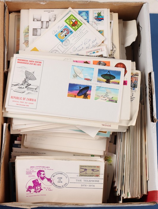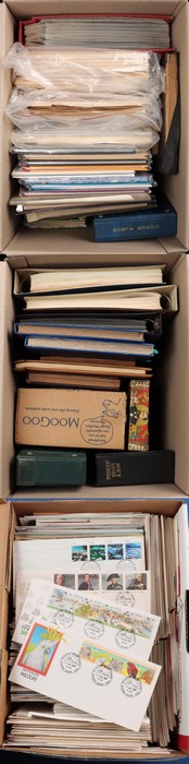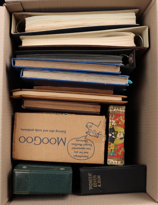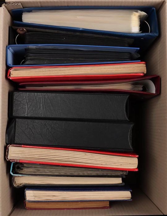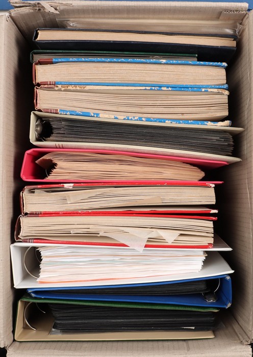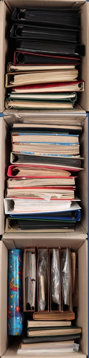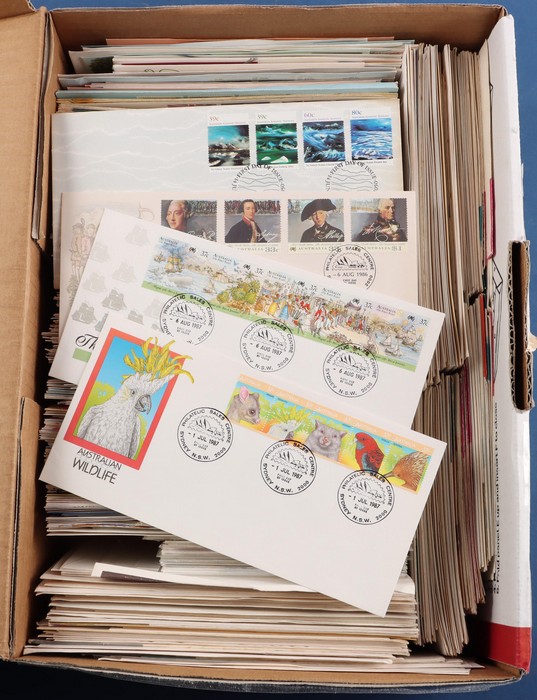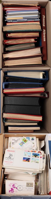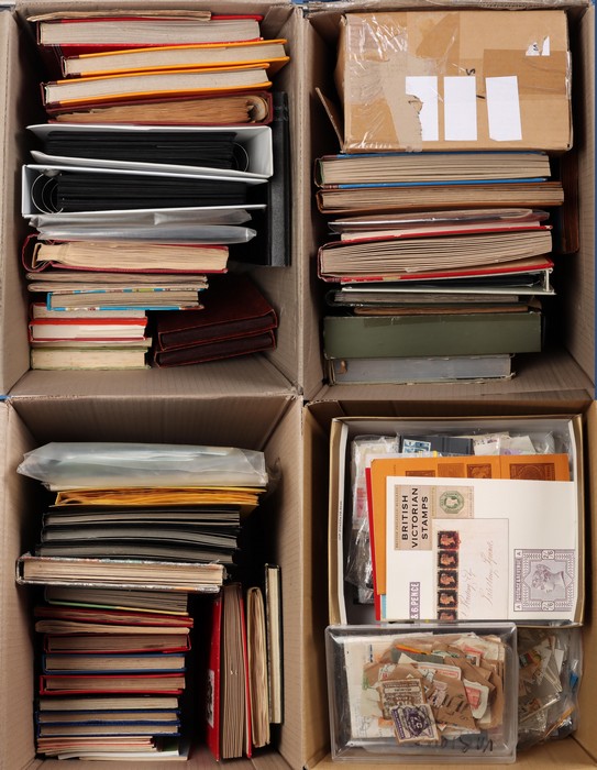 1013 imageThree carton lot with World collection to 1980 in 2 Bridge springback albums with many 100s of stamps inc Australia KGV to 1/4, 1930s Commem sets inc 1932 Bridge set to 5/-, 1934 VIC Cent & Macarthur sets, 1935 ANZAC 1/- & KGV SJ to 2/- plus high val Defs with KGVI to £1 Robes & pre-dec Navigators to £1 Bugs & GB from QV-QEII inc KGV to 5/- Seahorse. Asia inc China, Hong Kong & Malaysia. Australia 1966-95 in 70 hagners plus 1913-70 empty Seven Seas album & 1990s PO Books (8, issue cost $120), International Space Year, Taking Flight & Ties That Bind. World collection in 10 albums or s/books. WWF collection in 2 black binders with 14 Pic sets & 64 individual FDC 206-12. Mostly G-FU with some MNH, all neatly packed into 2 cartons plus 3rd box with around 700 1970s Pic/Commem FDC inc Australia, GB, SW Africa, United Nations, USA, Zambia & Zimbabwe. All in 2 large & 1 medium cartons. (Image1) (Image2) (Image3) (Image4) (Image5) (Image6) (Image7) (Image8) (Image9) (Image10) (Image11) (Image12)