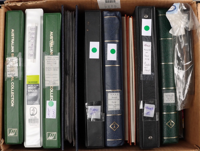 1012 imageThree carton lot with Australia to 1960 in loose leaf album with Kangaroos to 5/- inc 1st wmk 9d CTO, 2nd wmk set of 5 to 1/- & 3rd wmk to 5/-. KGVI Defs to £1 Arms & Commems to 1954 RV inc 1932 Bridge set to 5/-, 1935 ANZAC 1/- & KGV SJ set to 2/- plus States inc Queensland QV to 10/- brown. Australia 1966-93 decimal Pic collection in 2 Seven Seas hingeless albums (retail $300) inc scattered MNH Pics to $20 Gardens. 1990s PO Books (8, issue price $120) inc Dreams on Wheels, Military Aviation & Our Pets, Australia 1980s-90s FDC (400) mixed long Commem sets & PSE. NZ FDC accumulation (250) inc pre-decimal Healths with comp cancels sighted. World collections on loose leaves (100mm thick) in 3 plastic bags. GB & QEII high val Machins (few 100) in cigar box. Small World collection in old-time Postage Stamp albums plus others inc History of the Olympics collection. Some M/MNH, mostly G-FU, all in 2 large & 1 medium cartons. (Image1) (Image2) (Image3) (Image4) (Image5) (Image6) (Image7) (Image8) (Image9) (Image10) (Image11) (Image12) (Image13) (Image14) (Image15) (Image16) (Image17)