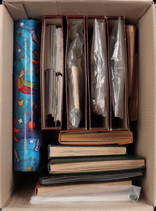 1010 imageTail-end four carton Mary MacKillop Charity lot with collection in 15 small/medium albums & 10 large s/books with Australia pre-decimals inc 1930s Commem sets inc KGV SJ to 2/- & other pre-decimal to £1 Arms. Aust Aerogrammes (200) mixed UN/CTO. Aust States in tin plus small collection on loose leaves, plus 90 hagners with GB, NZ & USA. Australia decimal/pre-decimal Pics in plastic bags plus scattered extras inc KGV, Cinderellas & State Revenues. Also literature inc non-current AG QV & KGVI Specialised Stamp Catalogues & Channel Islands Postal History. (Image1)