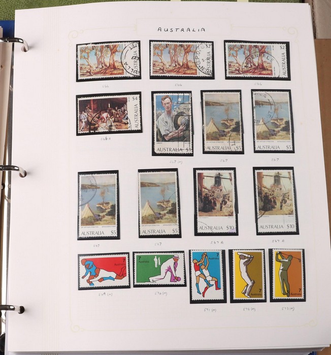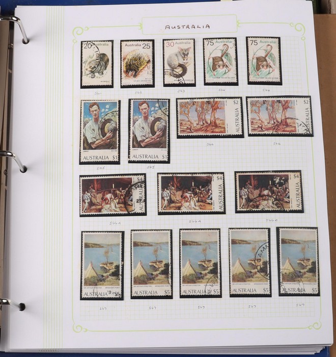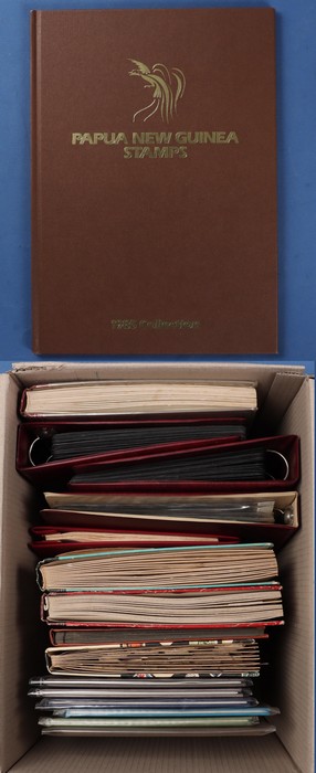 1028 imageTwo Carton Lot A inc PNG 1986-1990 PO Year Albums set of 6 (retail $250), Australia accumulation to mid 1980s in 4 albums inc Pre-decimal to £2 Arms U & Decimal Pics MNH multiples. Australian Territories inc AAT to 2008, Nauru 1930s-1980s inc Ships (60) to 1/-, 1960s Pre-decimals to 5/- & MNH Decimals inc to $5. Norfolk Island from 1947 Ball Bay to 1970 Pics mixed M/MNH/U. NZ 1890s-1970s collection in loose leaf 'Kiwi' album inc QV to 1/-, KGV to 2/-, KGVI to 3/- plus Healths, Lighthouses & Decimal M/MNH Pics. World Thematic collection inc Christmas M/Sheets (200) in large binder plus 2nd album with another 180 M/Sheets inc 1981 RW, 1990s Philatelic Exhibitions, plus Ships, Birds, Motor Cars, Trains, Flight British Royalty & others. Also approx 60 hagners in two binders. General World collections in 2 loose leaf albums inc Australian Kangaroos to 5/-, Hong Kong 1980s QEII Defs to $50 in small s/book & Australian Phonecards in 2 albums & loose in tin. Mixed M/MNH/G-FU. 2 cartons. (Image1) (Image2) (Image3) (Image4) (Image5) (Image6) (Image7) (Image8) (Image9) (Image10) (Image11) (Image12) (Image13) (Image14) (Image15) (Image16) (Image17) (Image18) (Image19) (Image20) (Image21) (Image22) (Image23) (Image24) (Image25) (Image26) (Image27) (Image28) (Image29) (Image30) (Image31)