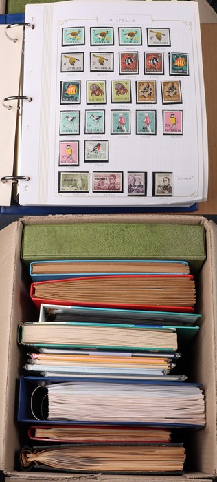 1027 imageTwelve album carton lot with GB 1953-71 near comp pre-decimal MNH collection in KABE hingeless album inc Castles to £1, 1950s/60s Commem sets & Machins to £1 black. World booklet collection (60) strength in 1970s-80s British Royalty inc 1977-78 QEII Silver Jubilee & 1981 RW. Australia mess inc 1960s booklet panes, 1968 Soil/medical gutter prs, 1969 Flight 5c blks of 9, 1972 Olympics 35c (12) & 1950s-60s Pics/Commems inc high val sets. Also 1990s PO publications (5) with PO Packs (issue costs $75) inc Antarctic Whales, Military Aviation & Planet earth. 1966-2000 mixed MNH/UN/VF U collection (many 100s) to 2000 Olympics in large binder inc 1966 Navigators opt SPECIMEN UN, better 1970s Commems MNH inc 1971 Christmas 7c blks of 7 (2), high val Paintings to $10 VFU & much more inc non-letter rate Pics/Commems & assorted M/Sheets with plenty of extras, plus more decimal Pics in green Chinese s/book with useful pickings to $20 Gardens, blue s/book with NZ 1950 Health sets in comp sheets. Aust 1980s FDC in black springback album World Collection in 1960s Seven Seas Golden Age loose leaf album. A diverse group with 13 albums in large carton inc 1997 Diana Memorial sheets of 50 (8 dif) inc Fiji, Kiribati, Solomon Is, Fiji, St Kitts & Vanuatu! (Few 1000) (Image1) (Image2) (Image3) (Image4) (Image5) (Image6) (Image7) (Image8) (Image9) (Image10) (Image11) (Image12) (Image13) (Image14) (Image15) (Image16) (Image17) (Image18) (Image19) (Image20) (Image21) (Image22) (Image23)