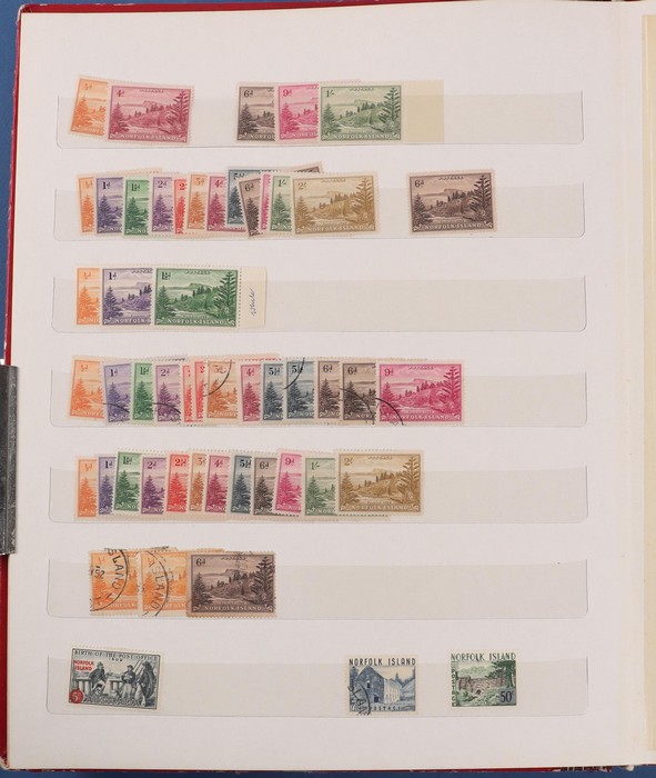 1037 imageVaried carton lot with Norfolk Is 1947 Ball Bay sets of 14 to 2/- blue (3), 1953 Pics to 5/- brown Bridge & 1960 Pics to 10/- Bird (2 sets) all VFM, retail $200. 1997 Diana Memorial sheets of 50 with Vanuatu 95c (2) & Tokelau $1 (2), total FV A$180. Channel Is 1980s-90s collection with 40 Pic/Commem sets & 20 M/Sheets. 1977 QEII Silver Jubilee FDC collection in custom made silver binder. British Commonwealth collection in 2 springback albums inc Canada to late 1960s, Malta, Zimbabwe, Sierra Leone, Tonga & Sarawak, plus USA 1880s-1980s in a 3rd album. 1984 Los Angeles Olympics FDC collection in red album. Australia 1993-2000 VGC Seven Seas hingeless album (replacement value $200). 1978 18c PPC & 1980 22c PPC (100 of ea). Finally Australia 1970s PO Pack collection (45, retail $450) inc 1969-75 Christmas comp, plus 1970 & 1971 selected issue packs. Few mixed condition, mostly MNH/M/F-VFU condition. (Image1) (Image2) (Image3) (Image4) (Image5) (Image6) (Image7) (Image8) (Image9) (Image10) (Image11) (Image12) (Image13) (Image14) (Image15) (Image16)