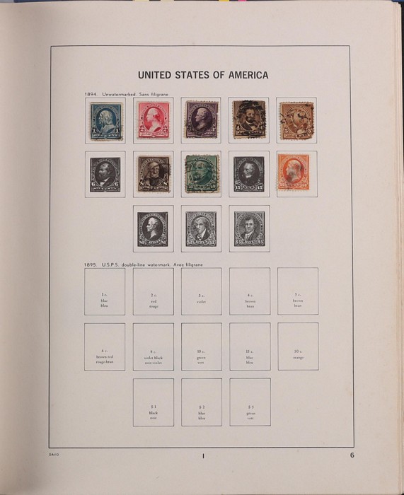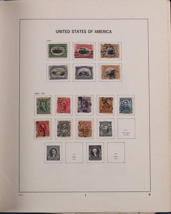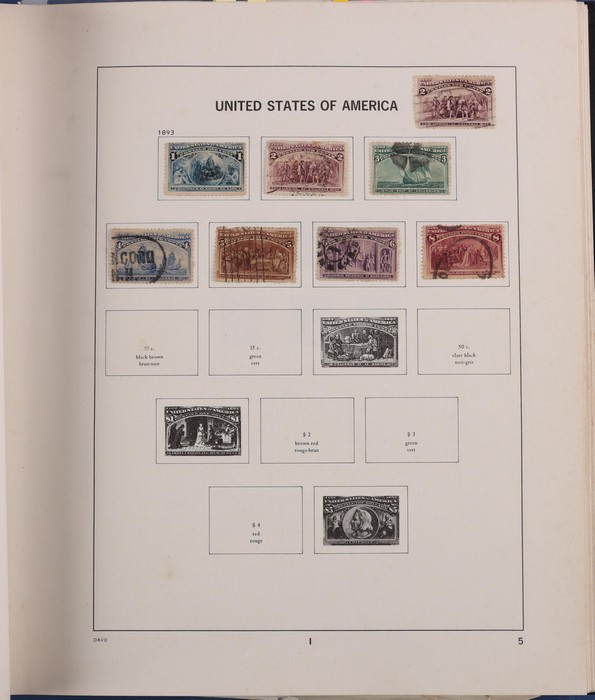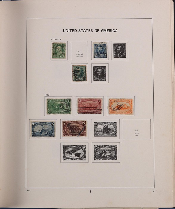 1033 imageUSA 1880s-1990s Collection in 2 Davo illustrated albums in 1893 Columbus to 8c, 1895 Def to 50c, 1898 Trans-Mississippi to 8c, 1904 St Louis set, 1922-32 to $5, 1923 Airs set, back of the book inc Special Delivery 1885 10c. Then extensive range of later 1960s-90s. Earlies mostly U later (mostly) MNH (FV US$235). Used some earlies mixed condition generally G-VF. SG cat £900 to early 1950s plus the MNH total A$2100. (100). (Image1) (Image2) (Image3) (Image4) (Image5) (Image6) (Image7) (Image8)