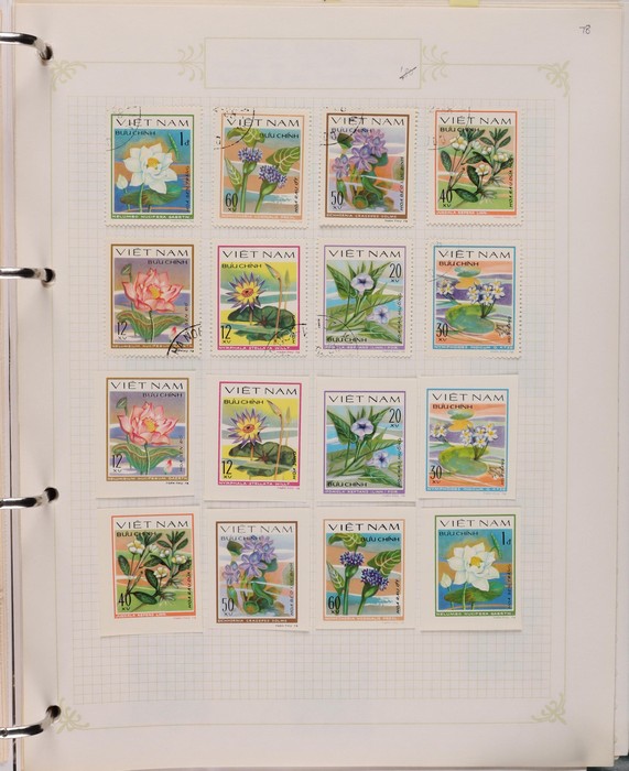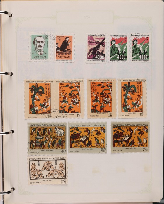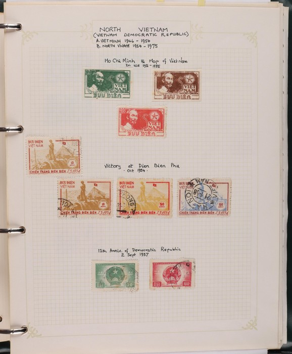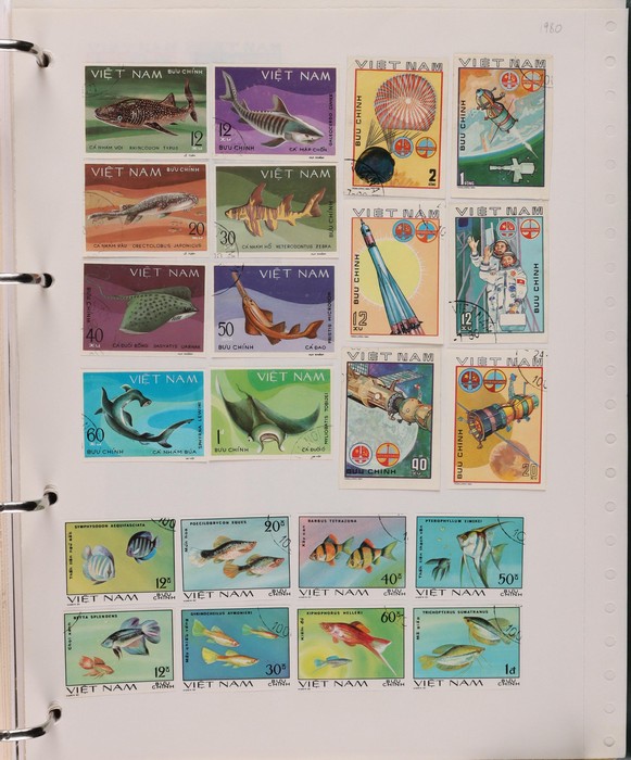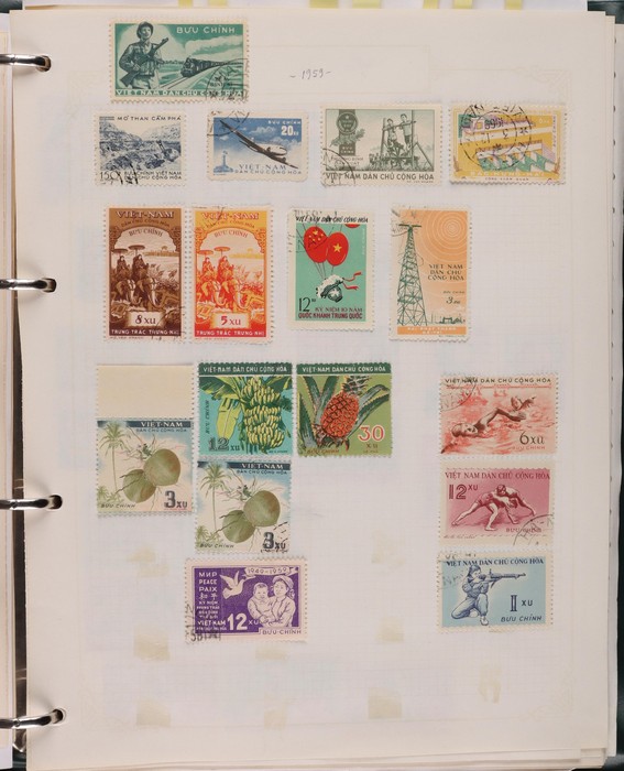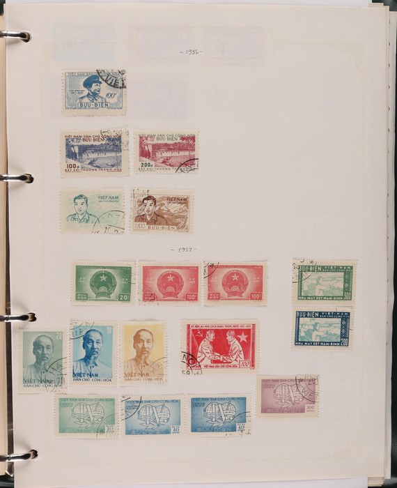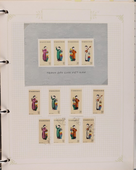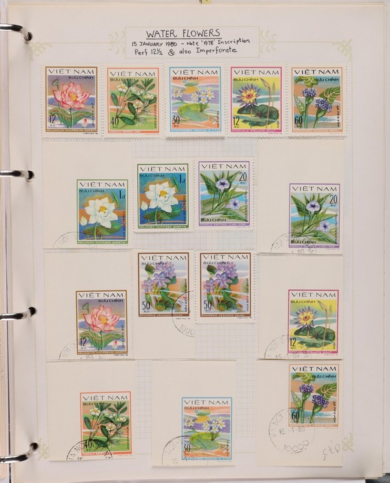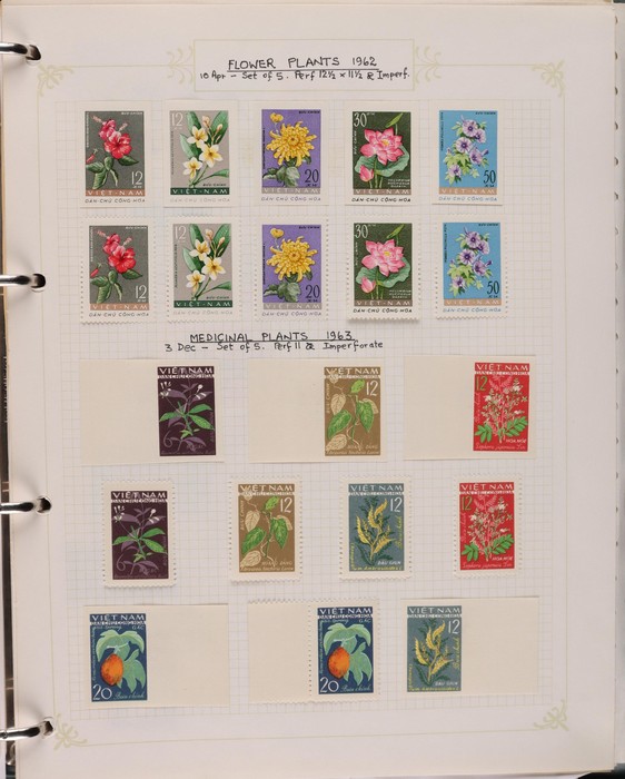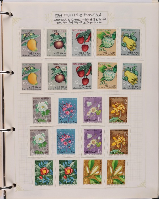 1041 imageVietnam North: 1951-2019 collection in green binder, 1951 Ho Chi Minh set M (SG N4-6), plus 100d (3) U. 1954 Victory set, 1954 50d SG N14 U, 1958 Education set, 1961 Space Flight 5 sets inc blks of 4 CTO. 1961 Artists Long Imperf set & M/Sheet. 1962 Folk Dancing set & M/Sheet, 1962 Flower sets Imperf & Perf M. Then various 1960s + 1970s Flowers + Fruit sets perf + Imperf M inc 1971 Tigers set & M/Sheet, various later sets to 1970s-1980s, plus a selection to post 2000. Some light duplication but mostly F-VF condition. Total cat £2350 = A$4700. A good collection of an unusual area. (1400++, 10 M/S) (Image1) (Image2) (Image3) (Image4) (Image5) (Image6) (Image7) (Image8) (Image9) (Image10) (Image11) (Image12) (Image13) (Image14) (Image15) (Image16) (Image17) (Image18) (Image19)