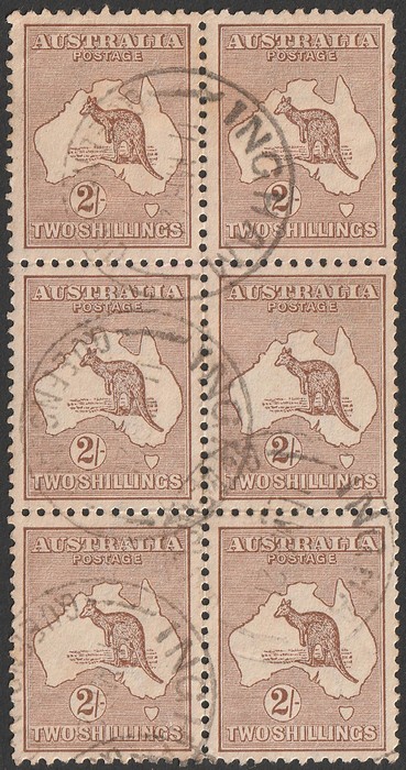 (2x3). F-VFU, with neat 'Ingham / Queensland' cds. SG 41 cat £90++, ACSC 37A cat $210++. Rare multiple. (6) (P) (Image1)