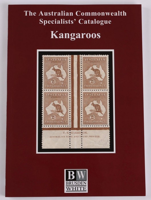 Commonwealth Specialists' Catalogue - Kangaroos. 2021 Edition inc details on CTO cancels ex Specimen sets FDC, proofs & essays. on cover, both solo frankings & mixed frankings, plate varieties, inc positions. Profusely illustrated. Essential must