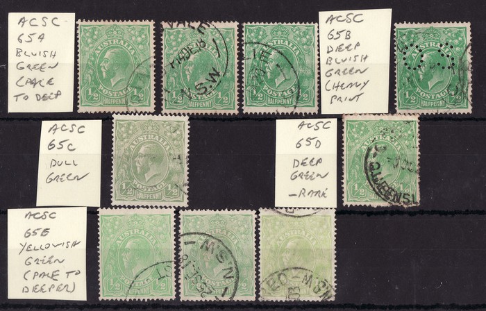 shade collection with all listed shades, the deep green shade is much rarer than stated by ACSC & is difficult to find. FU. SG 48(var), ACSC 65(A-E) cat is $140. (9).