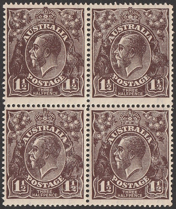 brown blk of 4. Fresh VF MNH. SG 51(var). ACSC 84A cat $100. (4) (Image1)