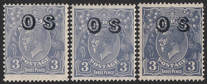 3 listed shades pale blue, blue & deep blue. Fresh F-VF MNH. SG O131(var). ACSC 119 A/C (OS) cat $130. (3) (Image1)