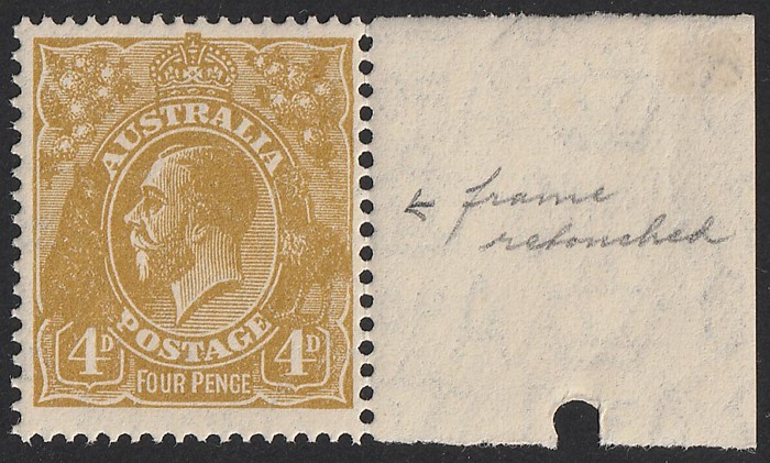 variety 'right frame thickening & bulging - retouched' (4R42). Fresh VF MLH. SG 129(var). ACSC 117 A (4) k cat $200. (Image1)