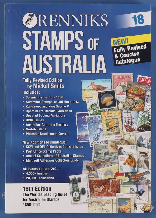 Rennicks Stamps of Australia, 18th Edition, with issues to mid 2024 inc States, Decimal, FDC, PNC, PO Packs & PO Year albums, plus BCOF opts & AAT. 400+ pgs. Brand new. Just released. (Image1) (Image2)