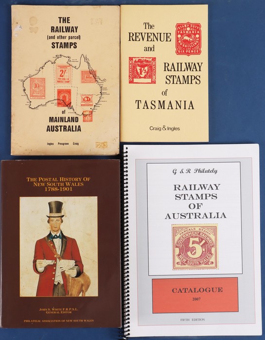 Wales, The Postal History 1788-1901 by JS White (General Editor), pub 1988 with 481 pgs & DJ. Invaluable reference work with much previously unavailable information plus illustrations of pmks, cancels & covers. Also Railways Stamps of Australia, G&R