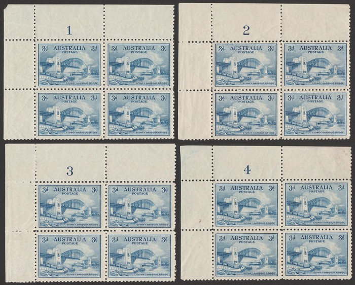 type B, (horiz mesh), set of 4, Plate Nos 1-4 UL cnr blks of 4. VFM & MNH. ACSC 147 z-za cat $200+. (Image1)