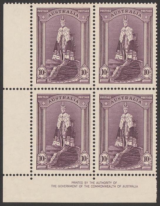 thick paper Authority imprint blk of 4. VF fresh MNH. SG 177 cat £200. ACSC 214Az cat $375. (4) (Image1)